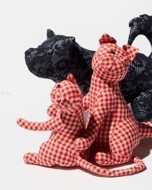 Issue 2 - little things beginでは、リトゥン バイと親交のあるヴィンテージショップ「ビジュー(bijou)」のほか、「フロットサムブックス(flotsam books)」「古書玉椿」などの書店が協力。また、アーカイヴ生地で製作した犬のぬいぐるみ(大 6万500円、小 2万7500円)や、「リヴォトルト・ピーシーズ(Rivotorto Pieces)」と共同製作したブックマーク(1760円)といった伊勢丹新宿店限定のアイテム、リトゥン バイの新旧のアイテム、デザイナーの山縣良和によるドローイング、アイテムの着想源となったプロダクトなどを揃える。