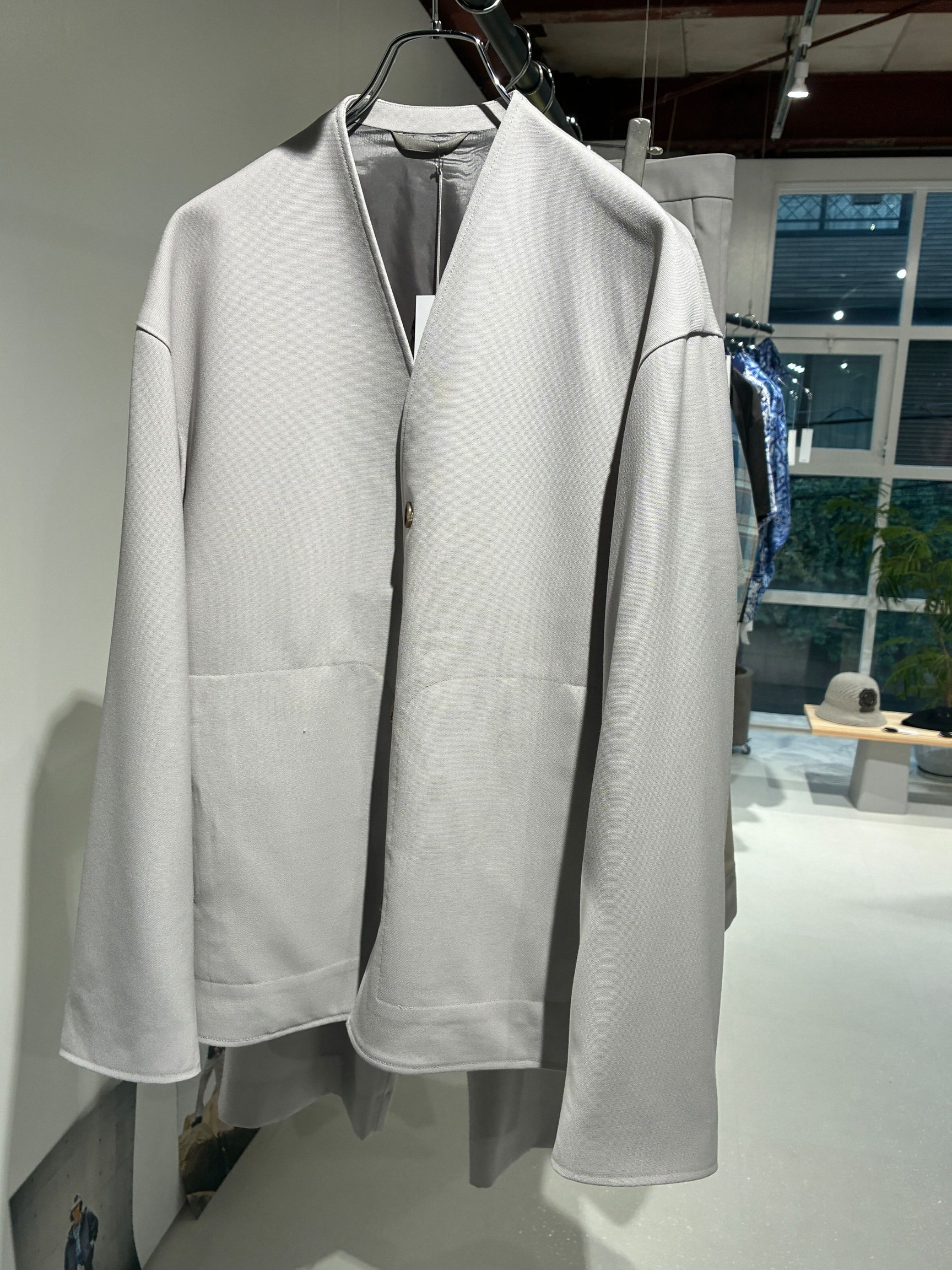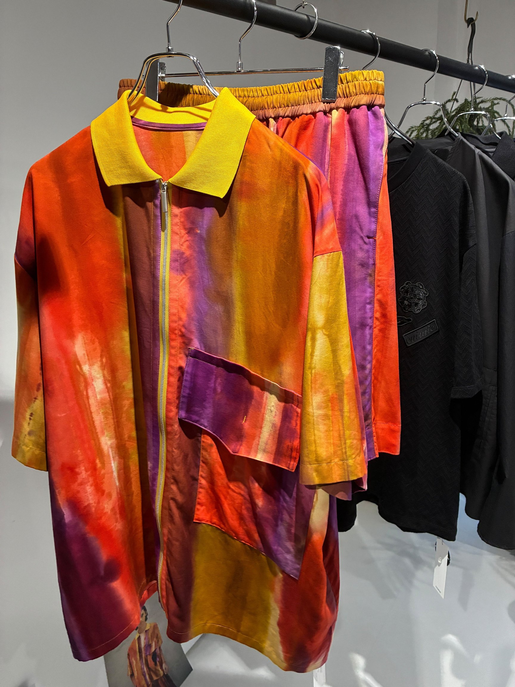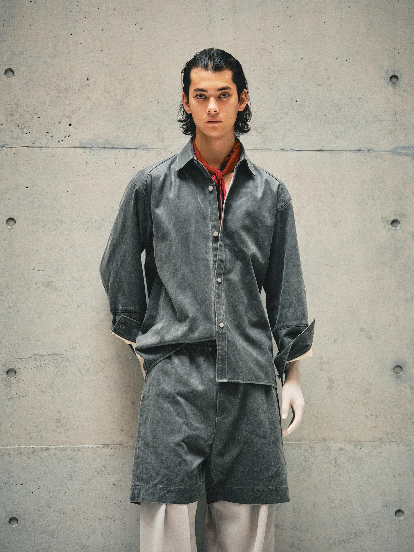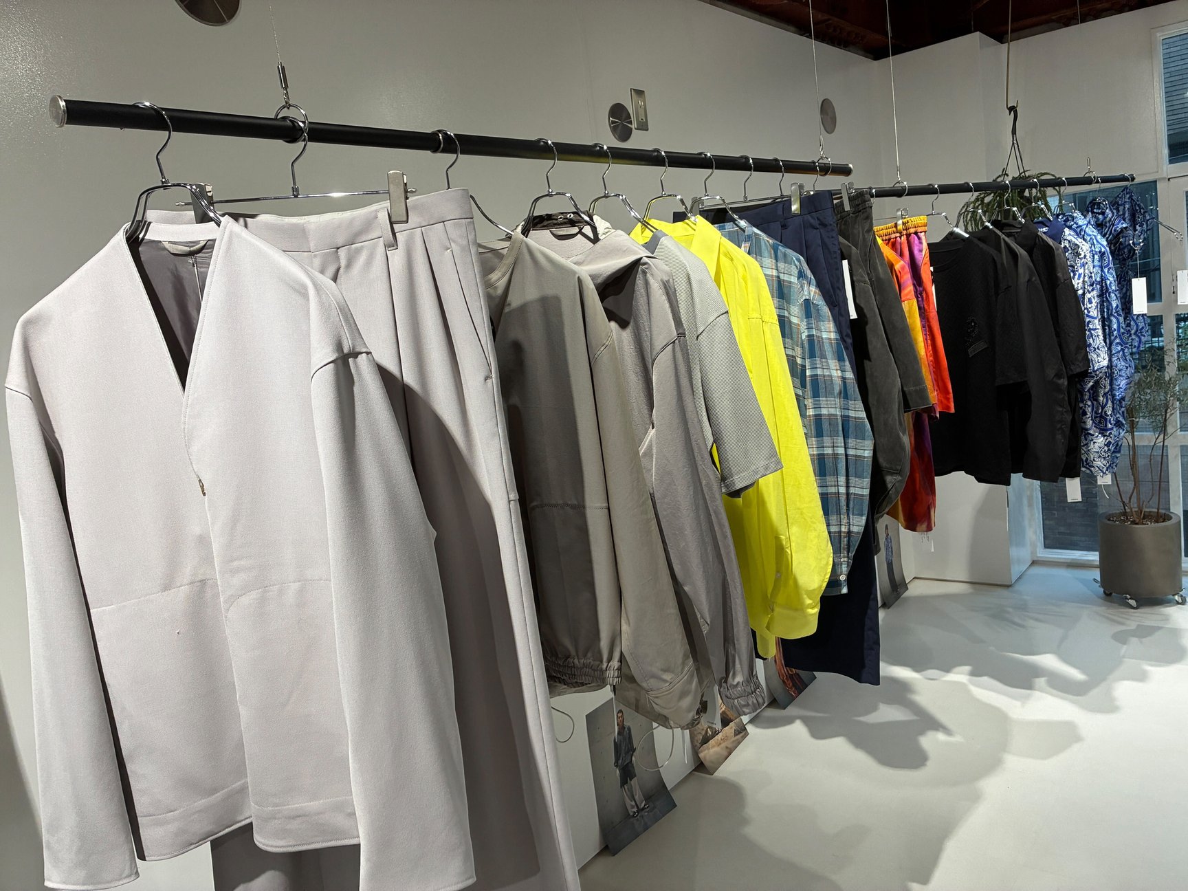 デビューシーズンの2025年秋冬コレクションでは、ブランドコンセプト「洋服を第二の皮膚として捉える」を表現したという独特なオーバーサイズシルエットのアイテムを、グレーやブラックなどモノトーンを基調にしたカラーで展開。新作の2026年春夏コレクションでは「VIBRANT SPOT(生き生きとした場所)」をテーマに、鮮やかな色彩のアイテムをラインナップ。袖山を高くし、肩周りのボリュームを抑えたTシャツや、後ろ身頃に切り替えを入れ、縫い代により立体感を追求したタックパンツ、前面と背面で異なる素材を用いたジャケットのほか、手編みのバケットハットや、ワンショルダーバッグなど計16型をラインナップする。価格帯はアウターが8万5800〜11万円、トップスが3万800〜6万9300円、ボトムスが3万9600〜6万6000円、その他アイテムが1万3200〜7万2600円。