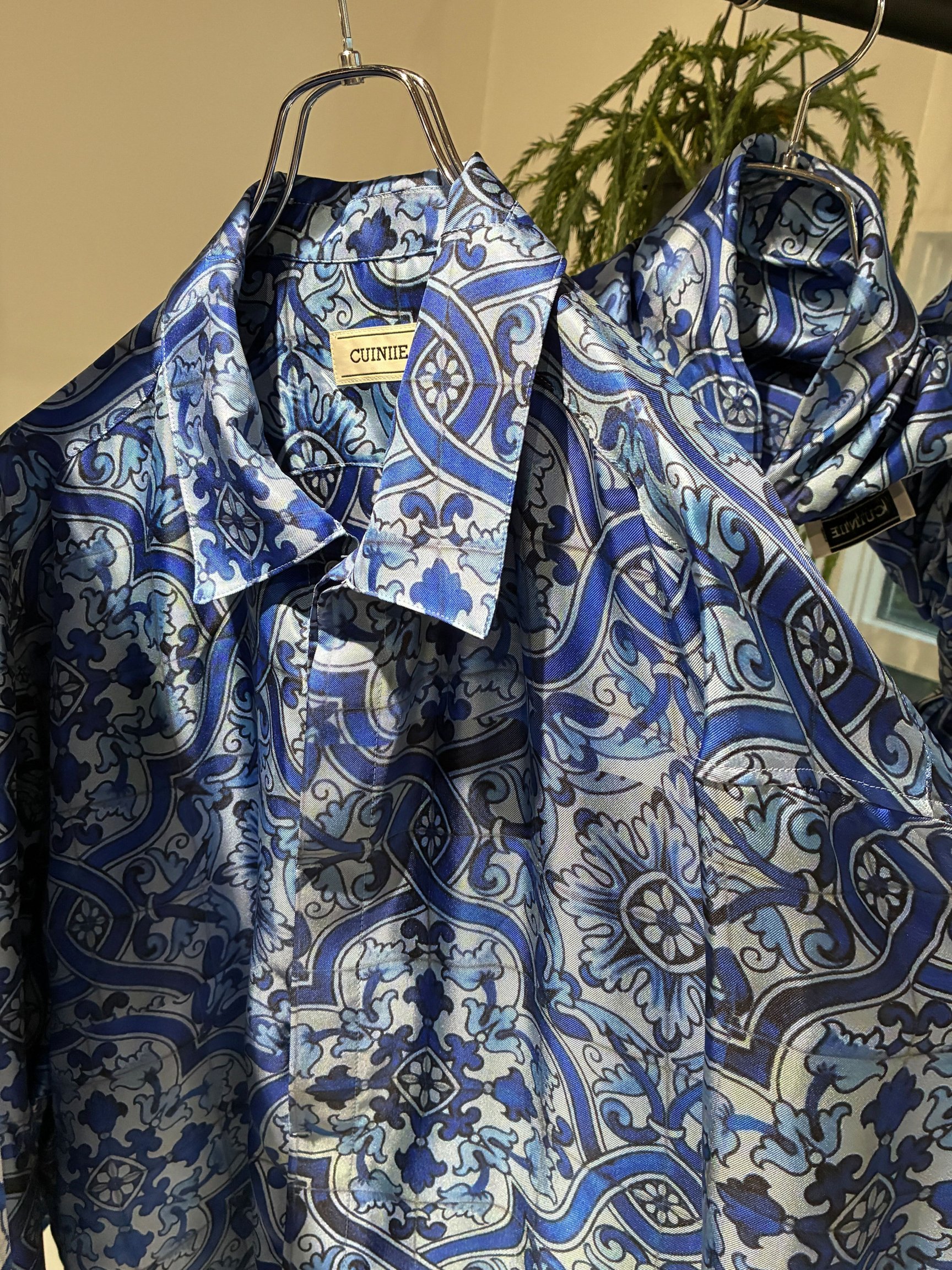 クイニーは「洋服を第二の皮膚として捉える」をコンセプトに掲げ、洋服を単に身体をなぞるものではなく、着用者の雰囲気や空気感を作り出すものとして定義。独特なカッティングを採用し、着用することで袖釜が内側に入り込むように上がり、立体的なシワが生まれるジャケットなど、オーバーサイズと立体性の両立を追求したシルエットを提案する。ブランド名は、ポルトガルにルーツを持つ國井の先祖の名前が由来。コレクションでは、ポルトガルのタイルの柄をプリントしたシャツやスカーフなど、デザイナーのルーツから着想したアイテムも登場する。