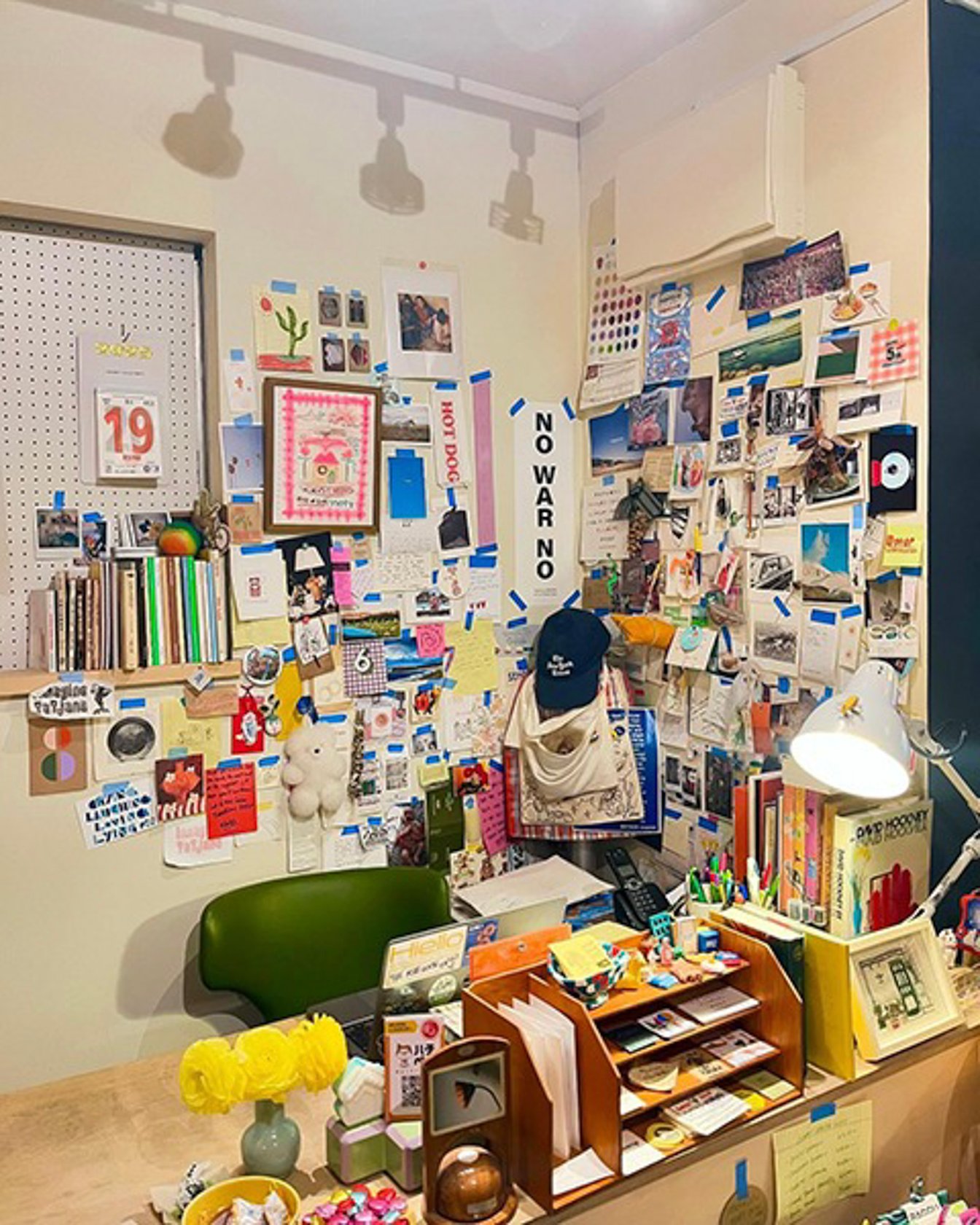 カウンターの周りには、海外ブランドのデザイナーさんが店主さんに送ってくれた手紙やポストカード、フライヤーを貼っているそうです。