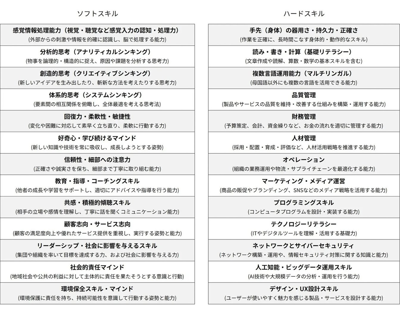 ・日本はソフトスキル、米国はテック系重視