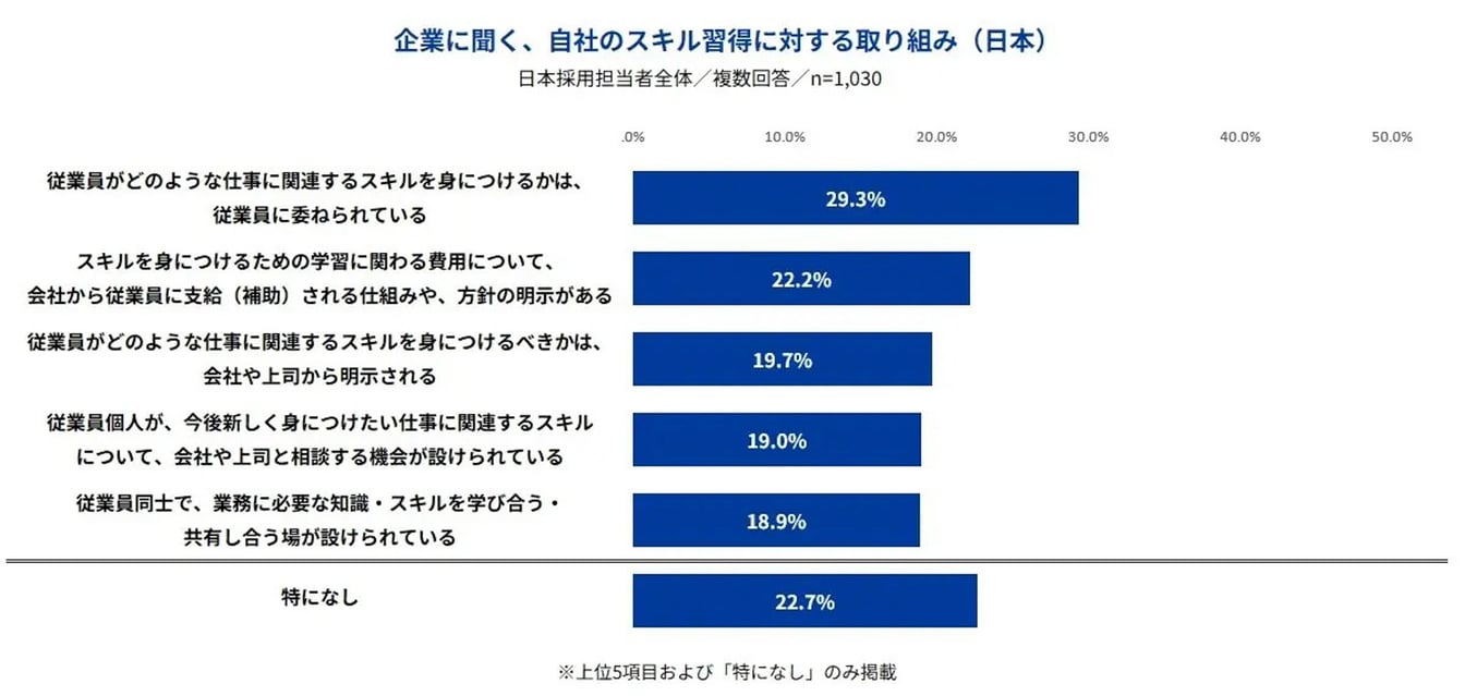 企業の従業員へのスキル習得支援の取り組みは?