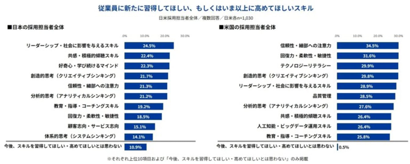 ・「今後、スキルを習得してほしい・高めてほしいとは思わない」と回答……日本では約1割(10.9%)。一方、米国ではわずか0.5%。