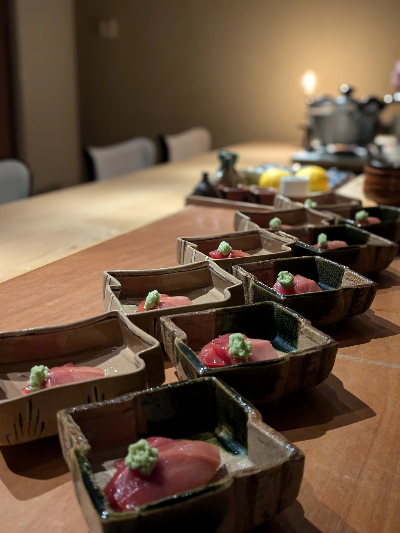 この2年余り、さまざまな食材を試した結果、ようやく良い状態でお客様に届けられるものが絞られてきました。フランスでは活魚がほとんど手に入らないため、昆布締めや酢締めを施します。それに合う白身魚を選んだり、マイナス60℃で急速冷凍された高品質なマグロを使ったりと、工夫を重ねています。調理法も、その魚に合わせて日本とは異なるアプローチが必要になることが多いです。