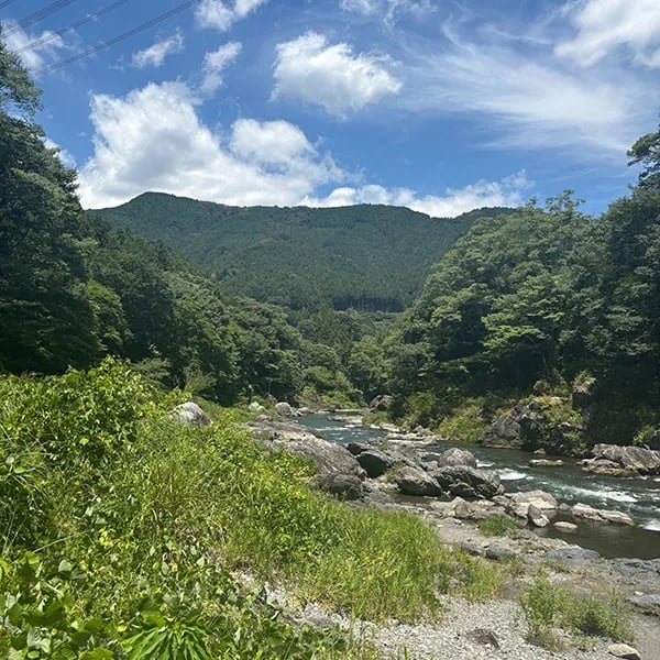 東京から車で約90分、電車で約2時間弱で行くことができる奥多摩は、本当に東京?と思わせるような山々と渓谷、湖に囲まれている自然スポット。川のせせらぎが聞こえるほど静かで落ち着いた場所なんです。