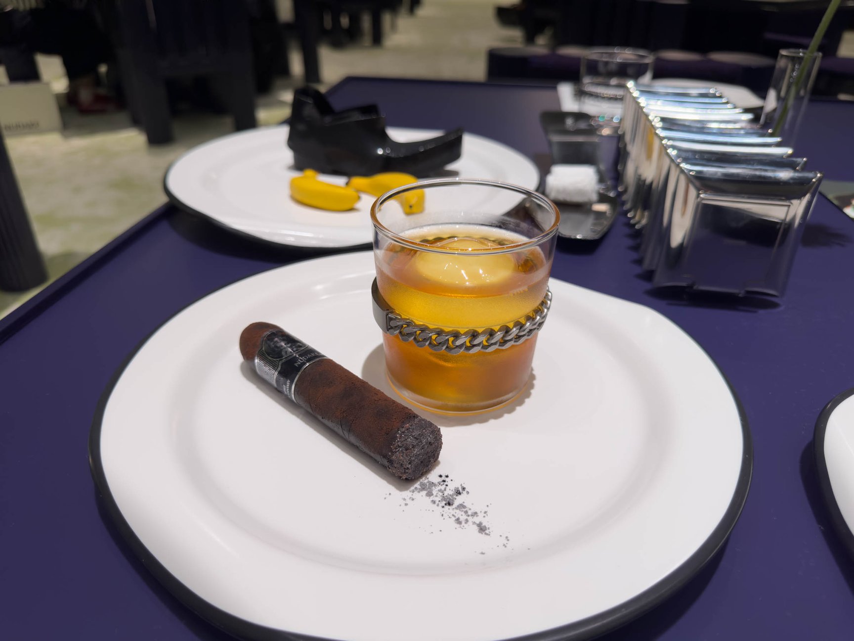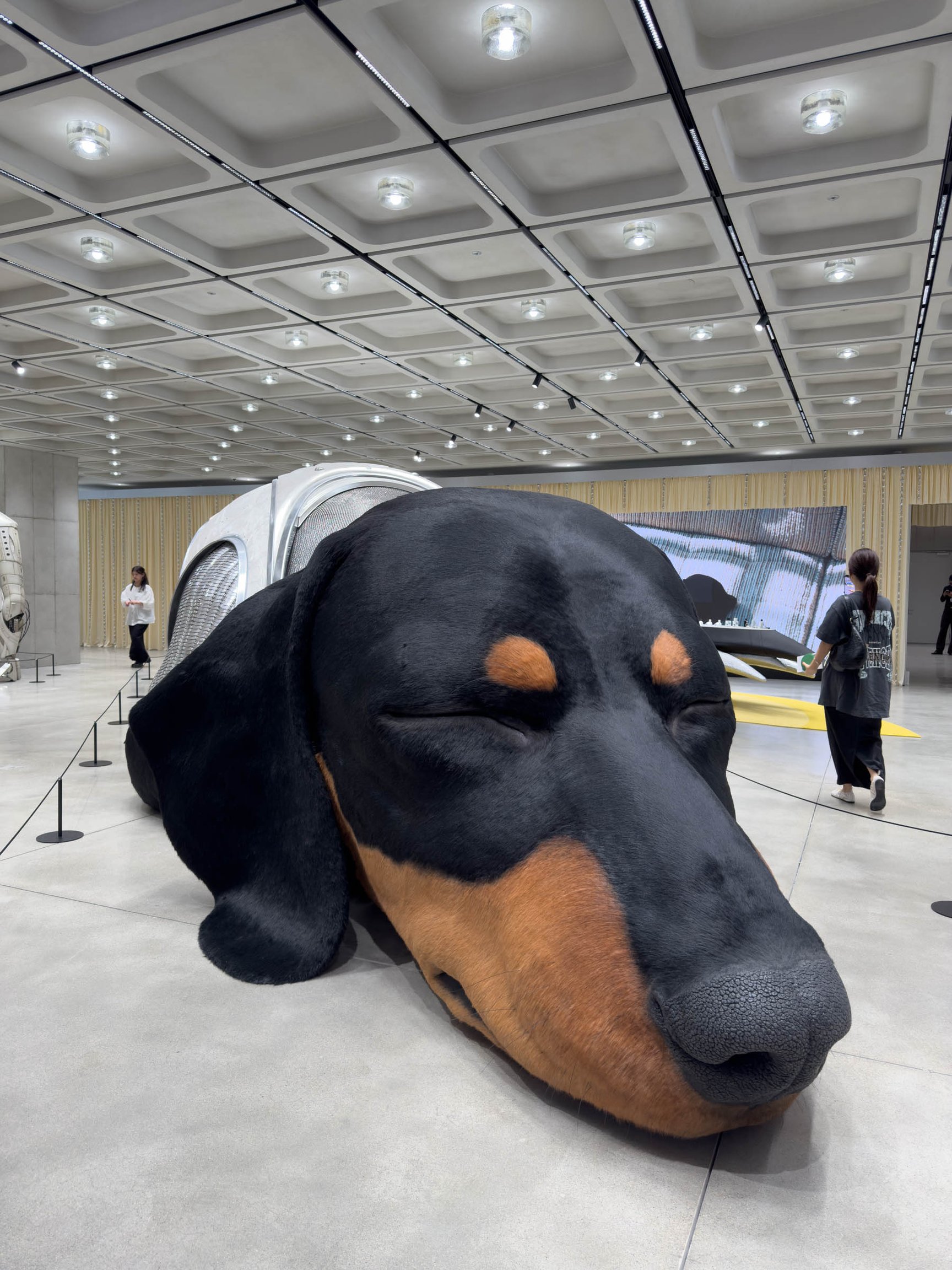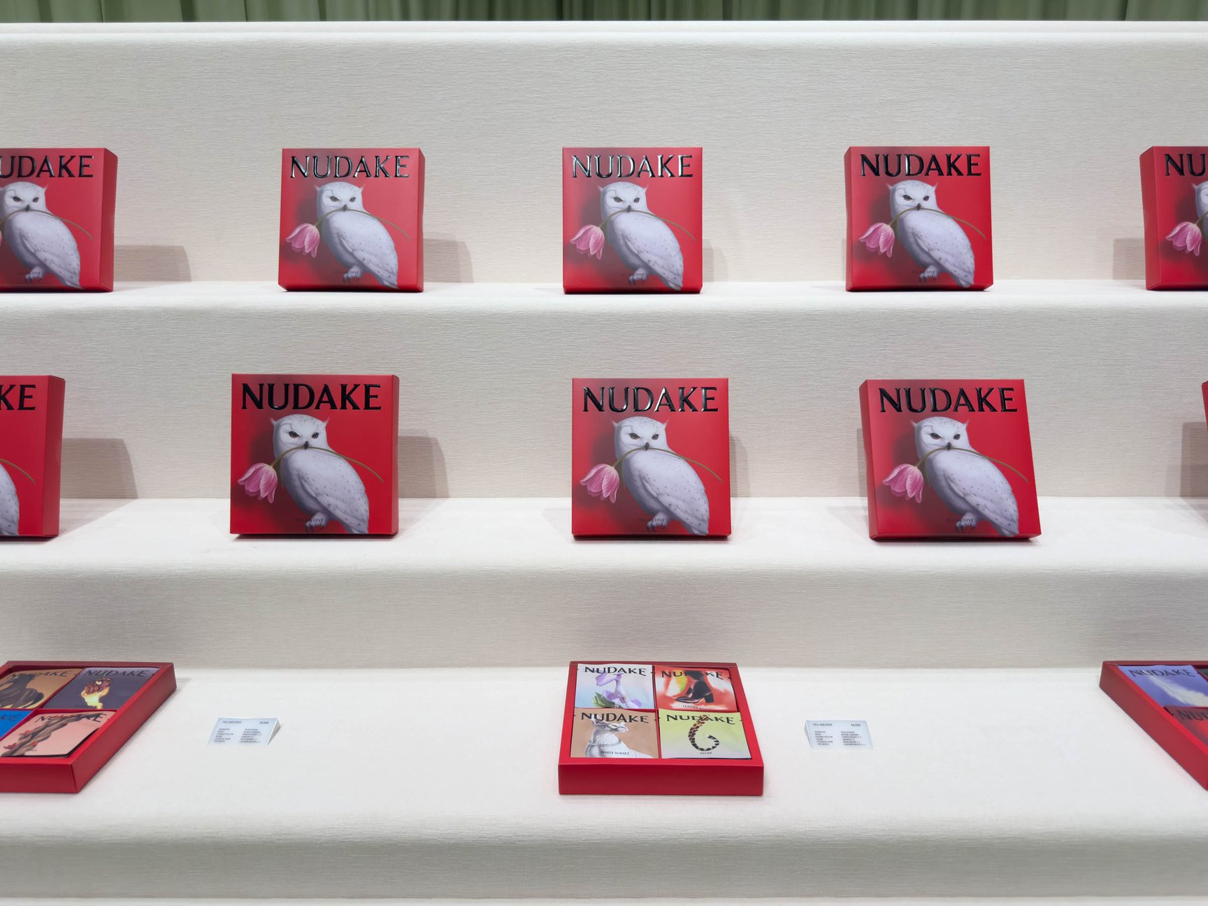 店舗の隣には、アーティストのマックス・シーデントーフ(Max Siedentopf)とのコラボレーションで制作したインスタレーション作品「More Is More」を設置。多数の黒いビニール袋が膨らんではしぼむことで巨大な波のようにゆらめき、空間全体が呼吸をしているかのような印象を与える。中央に置かれた老人の像は、生き生きとした眼差しで波の向こうを見つめ、手に握られた金の袋は、好奇心と発見、思いがけない場所で見出される美しさを象徴している。袋の中に何が入っているかは、鑑賞者の想像に委ねられ、人間が内に秘める輝きや驚き、無限の可能性を表現しているという。同作は、ドサン、上海、深圳のHAUS NOWHEREでも展示される。