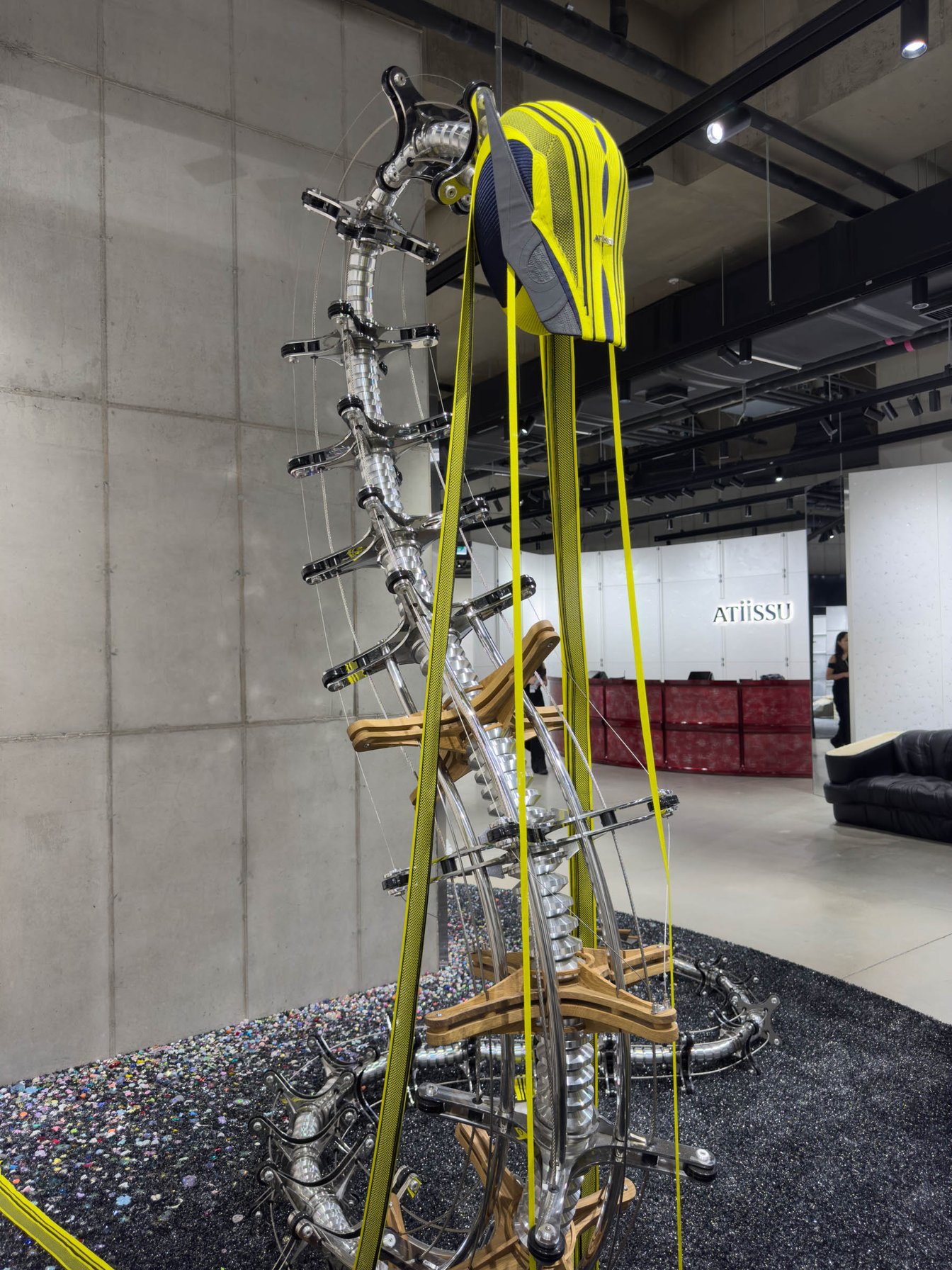 「A Timeless Issue」をブランド名の由来とするアティシュは、ひっくり返されたソファなど、鑑賞者が立ち止まり疑問を持つような店舗空間を表現した。