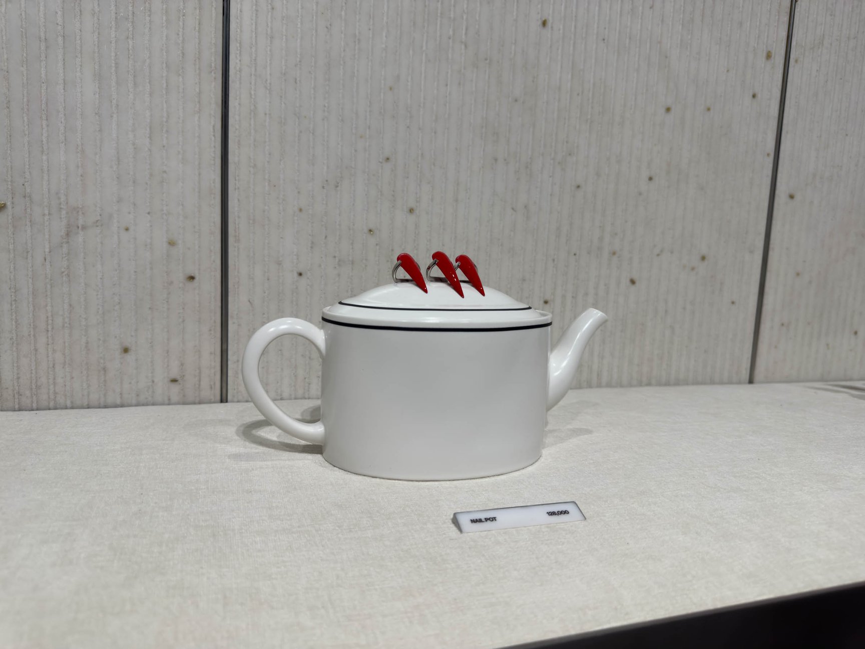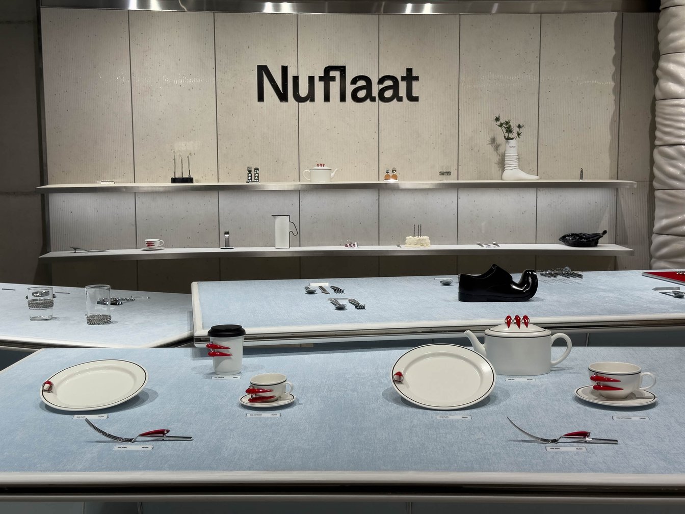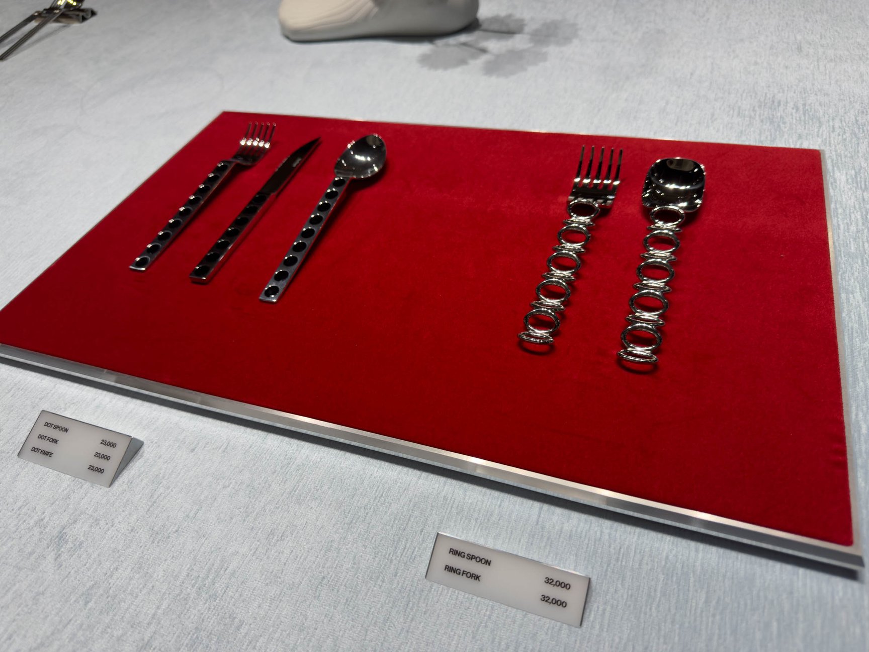 ヌフラットは、「DRESS YOUR TABLE」をスローガンに掲げ、ファッションオブジェとユーティリティの境界を取り払ったアートピースのようなテーブルウェアを展開。ファーストコレクションでは、手を添える位置に赤いネイルチップが配された「ネイルコレクション」をはじめ、持ち手がビスケットになったカトラリーや靴を模したミートハンマーなどユニークなデザインのアイテムを幅広くラインナップする。