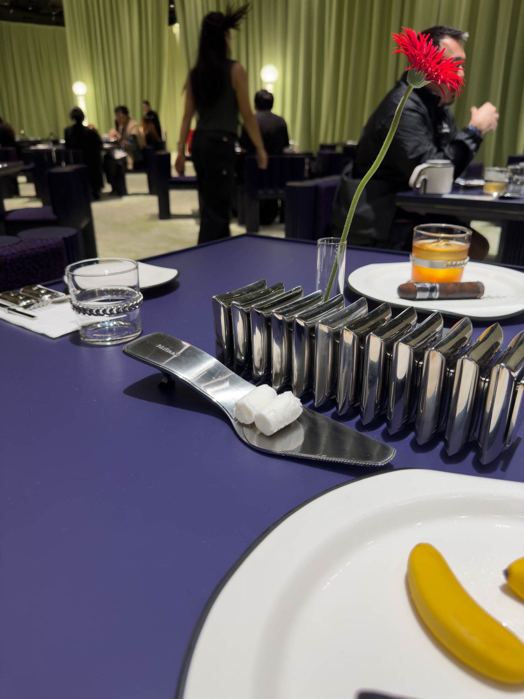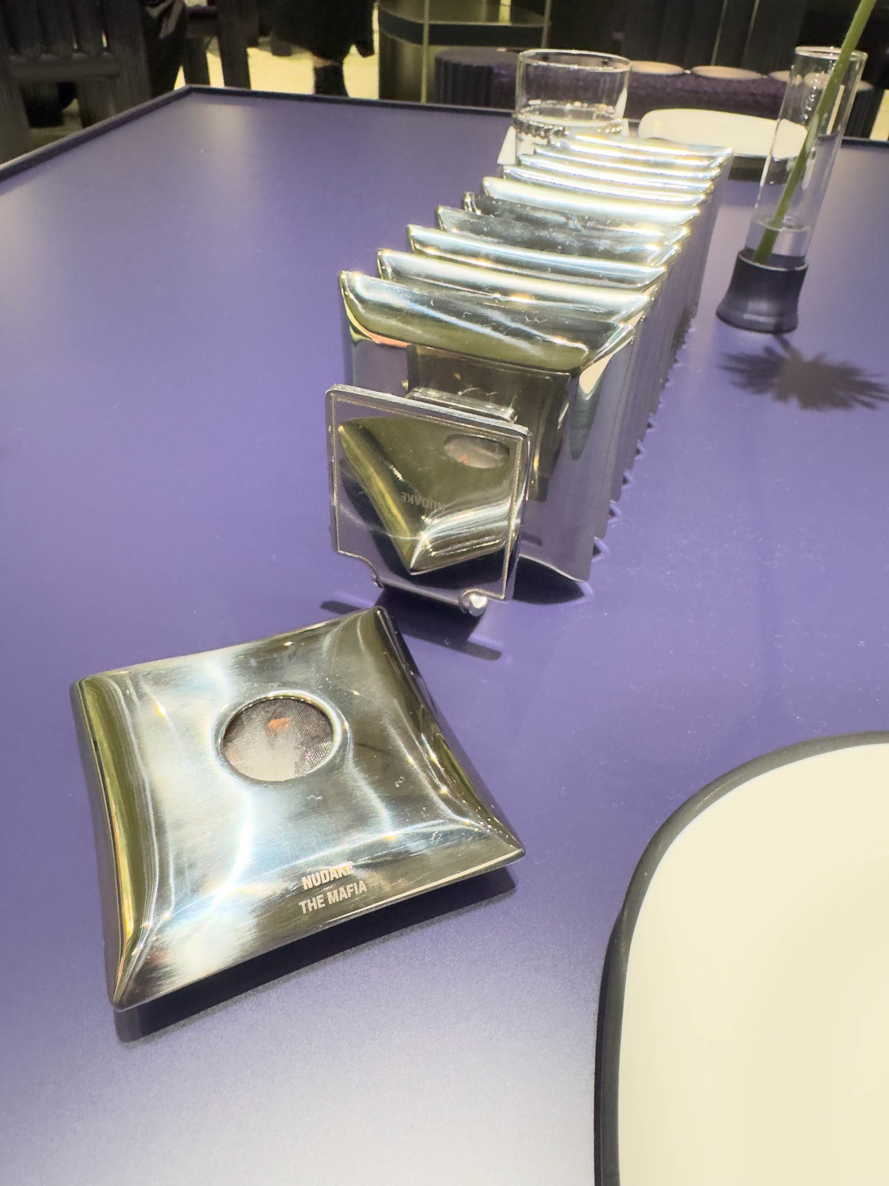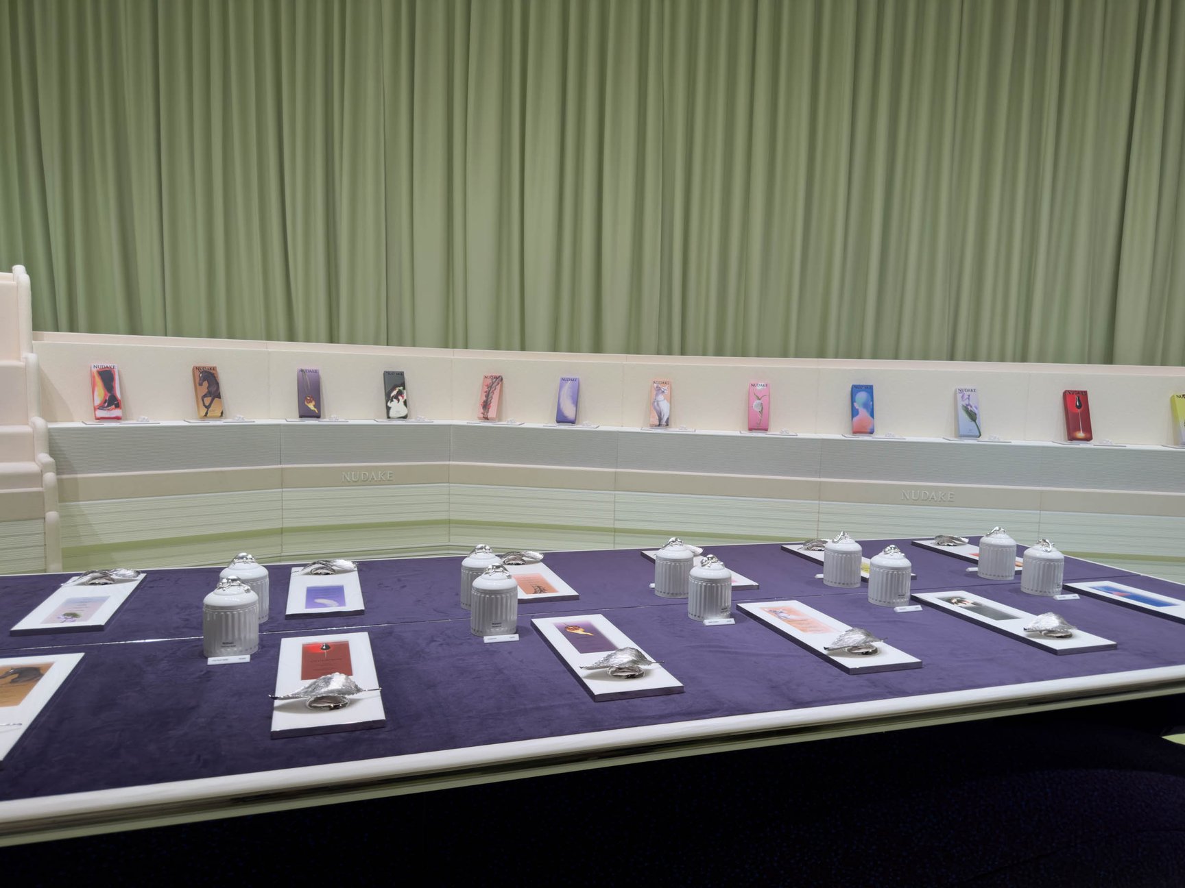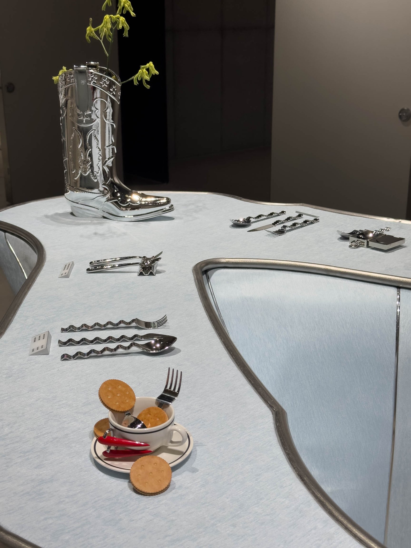 ヌフラットは、「DRESS YOUR TABLE」をスローガンに掲げ、ファッションオブジェとユーティリティの境界を取り払ったアートピースのようなテーブルウェアを展開。ファーストコレクションでは、手を添える位置に赤いネイルチップが配された「ネイルコレクション」をはじめ、持ち手がビスケットになったカトラリーや靴を模したミートハンマーなどユニークなデザインのアイテムを幅広くラインナップする。