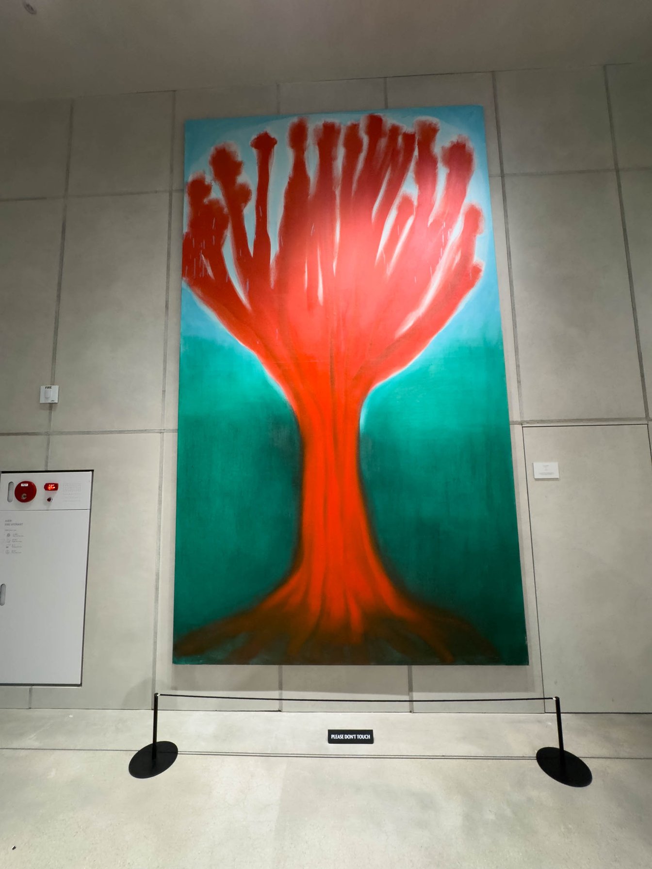 2階に上がるエレベーター前には、アーティストのミリアム・カーン(Miriam Cahn)が同社のために描きおろしたペイント作品を展示している。同社が所有するアートを来訪者と共有することで、同社の価値観や世界観を表現する。