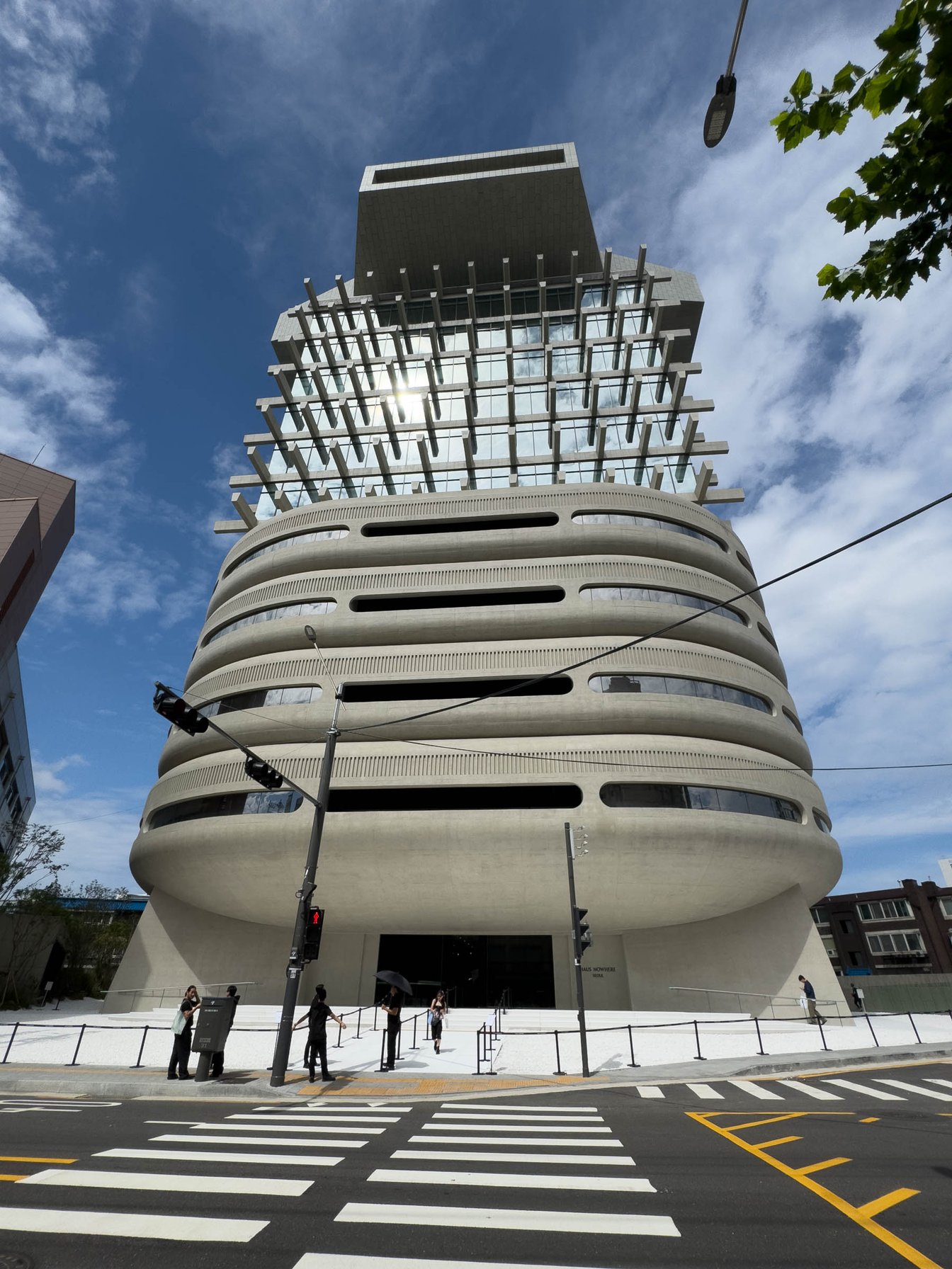 ハウスノーウェアソウルが誕生したのは、韓国トレンドの発信地ソンス(聖水)。情報解禁前からSNSで話題を集めてきた、地下1〜5階、地上1〜14階建てのユニークなヴィジュアルの建築は、ソンスの新たなランドマークとして存在感を放つ。1〜3階はショップ、5階がティーハウス、その他のフロアはアイアイコンバインドのオフィスになっている。