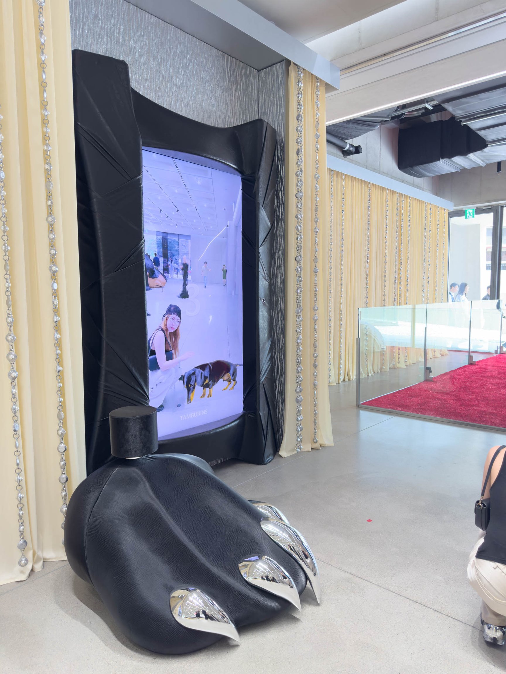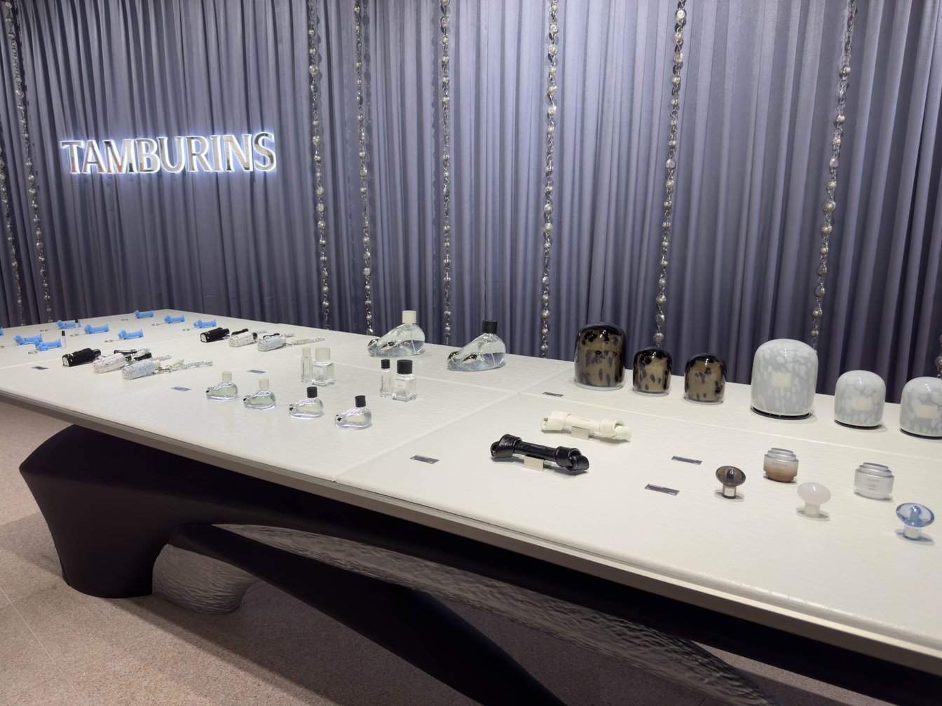 1階はプロジェクトスペースとして、同社が擁する5ブランドいずれかの最新コレクションの世界観を打ち出していく。オープン時は、タンバリンズが展開する新作パフュームコレクション「サンシャイン(SUNSHINE)」のポップアップを開催。膝の上で眠る子犬「サンシャイン」の巨大なオブジェや、同店を守る戦士のロボット、「Stray Kids」のフィリックスを起用したキャンペーン映像の上映、サンシャインが来場者と同じ服装に着替えるAI技術を活用したインタラクティブコンテンツを提供する。