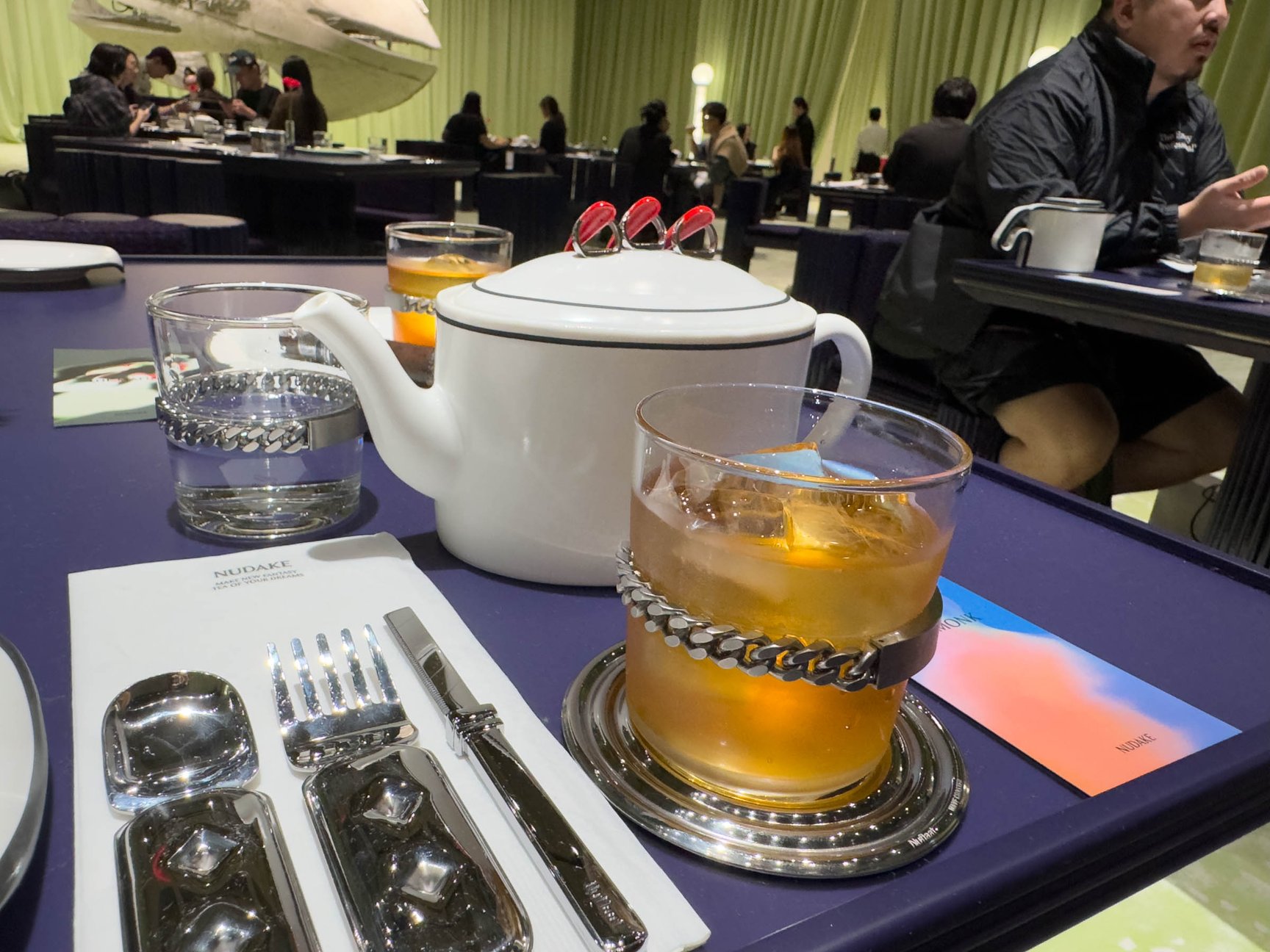5階には、デザートブランド「ヌデイク(NUDAKE)」の初のティーハウス「ヌデイク ティーハウス(NUDAKE TEA HOUSE)」のカフェスペースとショップを開設。オリジナルティーを中心としたヌデイク初の試みで、華やかな香りのティーやティーカクテルとデザートのペアリングを味わうことができる。