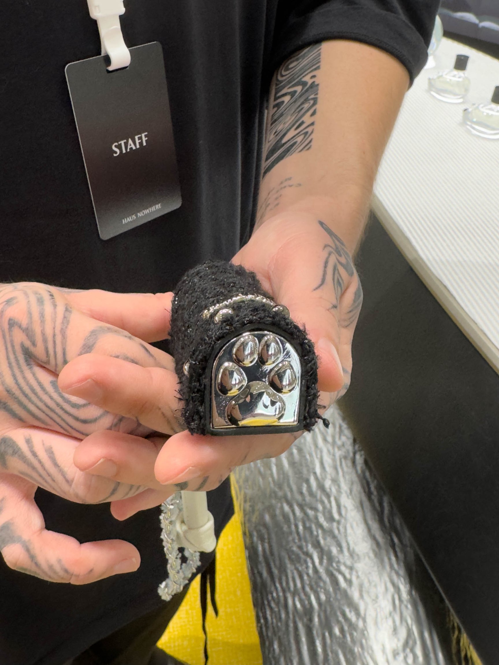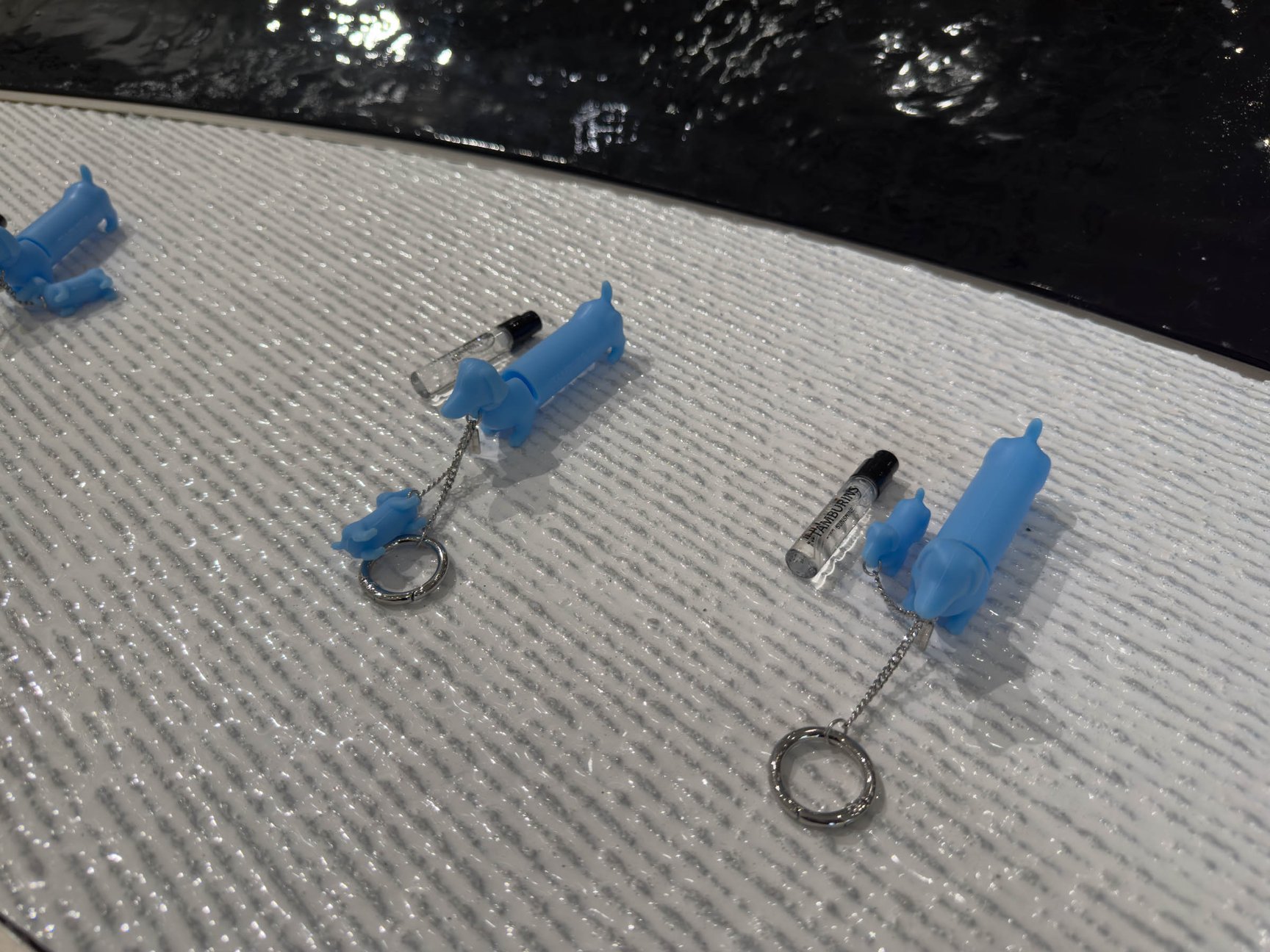同ポップアップでは、限定アイテムとして、犬の足を模したボトルのパフュームやキーリング、パフュームボトルをキーホルダーにして持ち歩けるケースウェアなどを販売する。