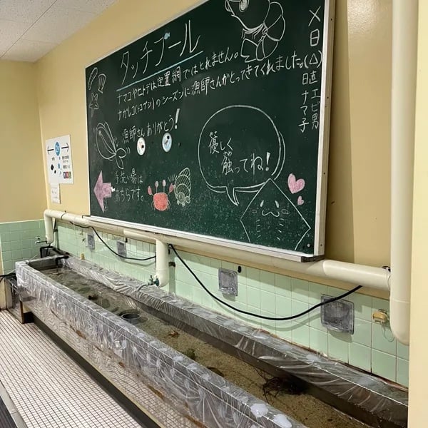 普通の水族館は、館内に大きな水槽を設置するのが一般的ですが、「むろと廃校水族館」では元々学校にあった設備を利用しているものが多いんです。
