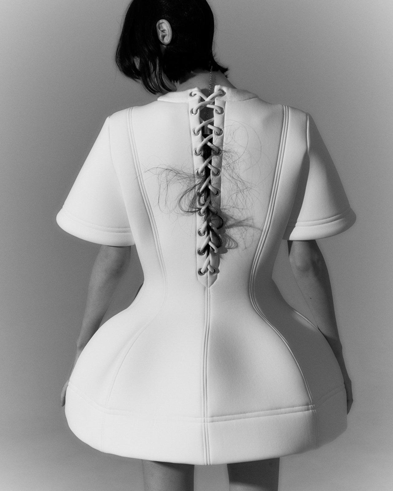 2026年春夏シーズンは、哲学者 鷲田清一の「ひとはなぜ服を着るのか」や、建築家で批評家のバーナード・ルドフスキー(Bernard Rudofsky)の「みっともない人体」といった書籍から着想を得て、整形や矯正、ピアッシング、タトゥーなどをモチーフにコレクションを製作。“そのままで良いはずのものに、敢えて手を加える”という行為に込められた意味を、ポジティブな視点で捉えてデザインに落とし込んだという。