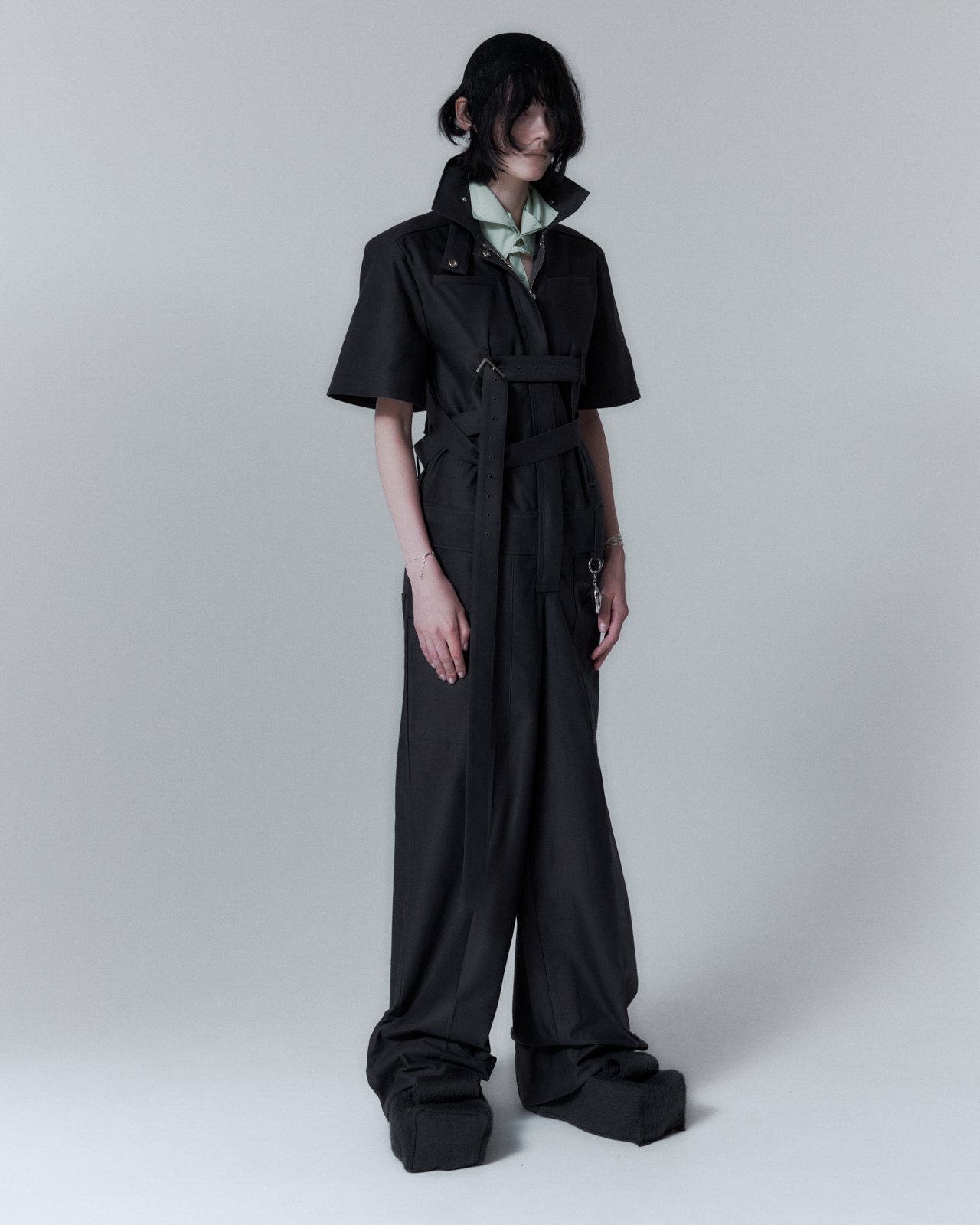 コレクションでは、規律や機能美がもたらす緊張感と実用性を兼ね備えた、ミリタリーウェアの要素を随所に採用。サーマル素材にハトメやレースアップのディテールを施したレオタードや、軍物のフィールドジャケットを思わせるデザインに、長さ2.6mのベルトを包帯のように身体に巻きつける装飾が付いたジャンプスーツなどを製作した。デザイン性の高いピースが多い一方で、UVカットや接触冷感、マシンウォッシャブルといった機能性のある素材を多用することで、日常での着やすさも考慮した。