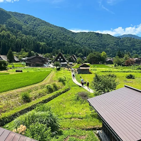 合掌造りの家屋が立ち並ぶ白川郷では、生き生きとした自然と爽快な空気に包まれた圧巻の景色を一望することができますよ。
