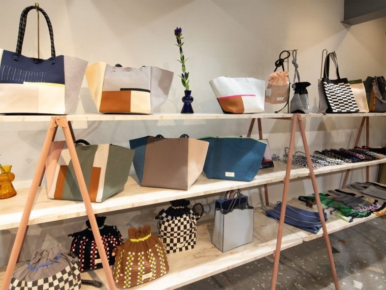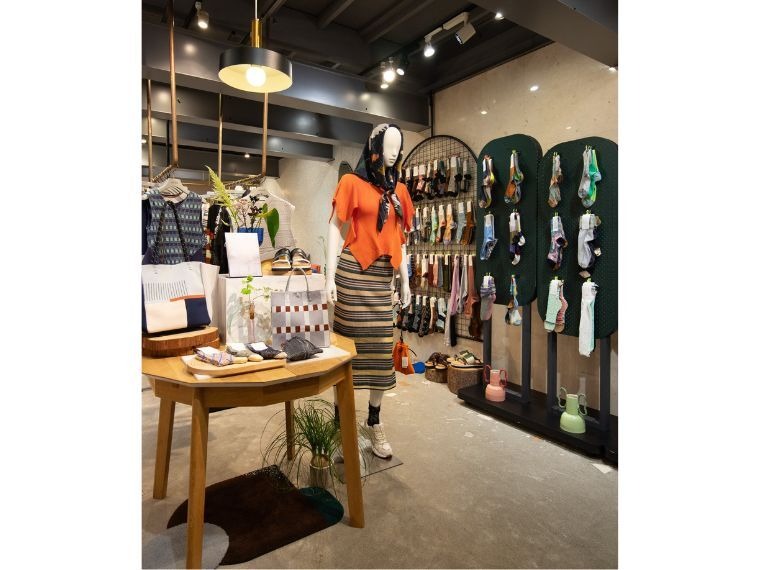 靴下、バッグ、洋服、クッションやラグなどインテリア雑貨まで幅広い商品を販売している