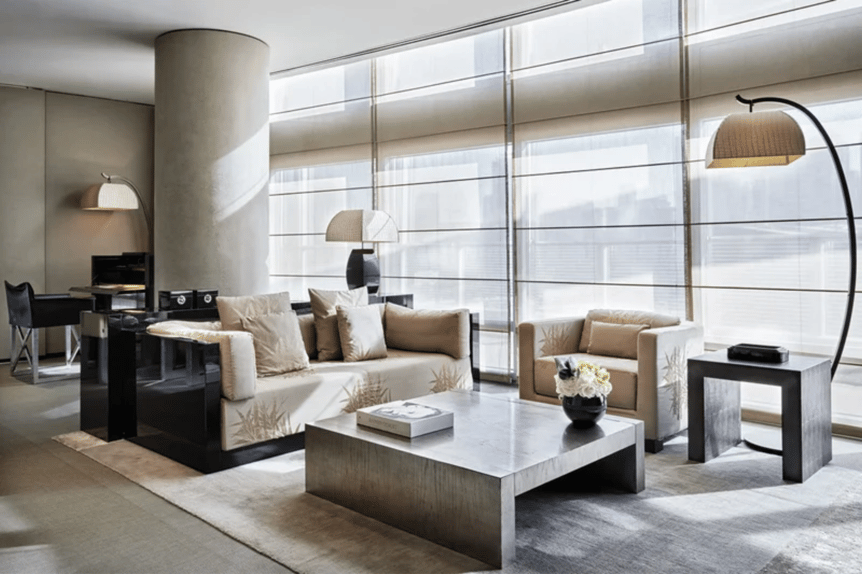 なかでも、ミラノの「アルマーニ・ホテル」は象徴的だ。エントランスから客室まで、すべての空間がアンコンジャケットと同じ美学で統一されている。壁面はソリッドなラインを描き、照明は柔らかな光で迎え、色彩は徹底してニュートラル。宿泊客は足を踏み入れた瞬間から、静寂のエレガンスに包まれ、アルマーニの世界観を生きることになる。