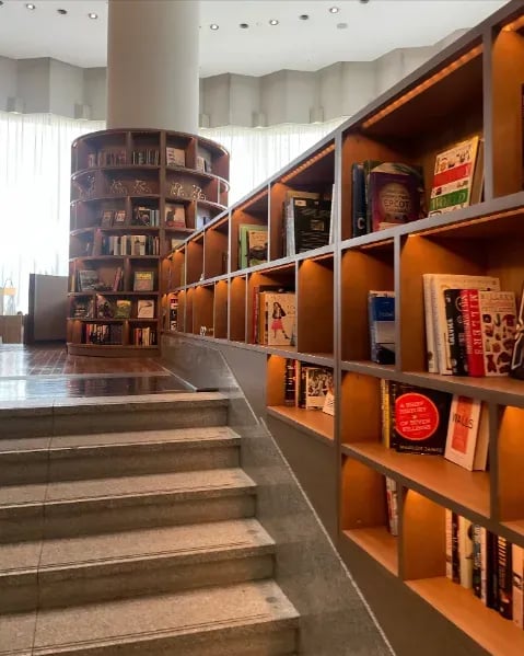 大きなブックシェルフが迷路のように立ち並ぶ様子は、まるで大人の秘密基地にいるみたい…!
