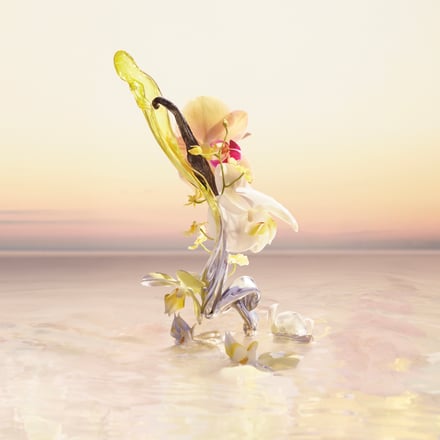 新作は、動きと光が共生する18世紀の夢想的なイルミネーションショーに着想。「光は源であると同時に変革のきっかけにもなる」という考えのもと、太陽のような輝きをイメージし、香りに落とし込んだ。パプアニューギニア産タヒチ種バニラのさや全体から採取した成分を、二酸化炭素抽出を行う前に低温冷凍することで、 限りなくピュアな香りを実現。バニラの香りが、ほのかなアニスや優しいフローラルノート、そして、レザーのような香りを引き立て、シルクのように優しく肌を包み込む。