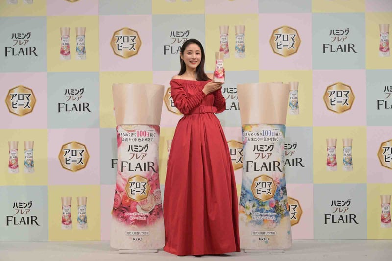 現在放送されている新CMについて、「現場はアロマビーズの香りで満たされていて、撮影スタッフも含めみんながご機嫌だったのが印象的でした」と語った。最後に「この発表会が産後初の公の場の登壇となりました。昨晩緊張して眠れなかったのですが、寝る時にクッションカバーからアロマビーズが香り、ポジティブでリラックスした気持ちになれました。新製品は、ふとした瞬間に生活を豊かにしてくれる商品だと実際に使ってみて感じました。ごきげんになりたい、そんなあなたにおすすめです」と締め括った。