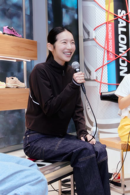 トークショーに登壇した在原は、今回のキャンペーンへの起用について「私は長らくサロモンを愛用してきたので、お話を頂いた時にはついに来たという気持ちでした。オファーに対してすごく嬉しい気持ちがあった一方で、企画が盛り沢山だったのでしっかり撮影できるかなという不安もあったのですが、結果的に素敵なものに仕上がったので嬉しいです」とコメント。自身初だという富士山での撮影に話が及ぶと「撮影当日は深夜1時50分に集合で、真夏なのに車の暖房が自動でつくほど寒かった。一番のハプニングは地蜂が出たこと。地面から蜂が出るなんて初めての経験なので本当に驚きました」と貴重なエピソードを振り返った。