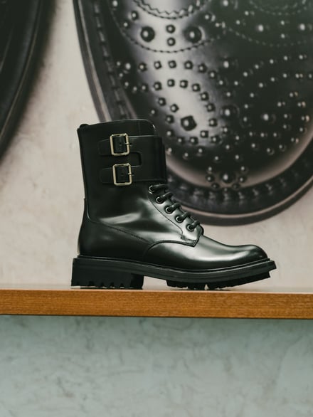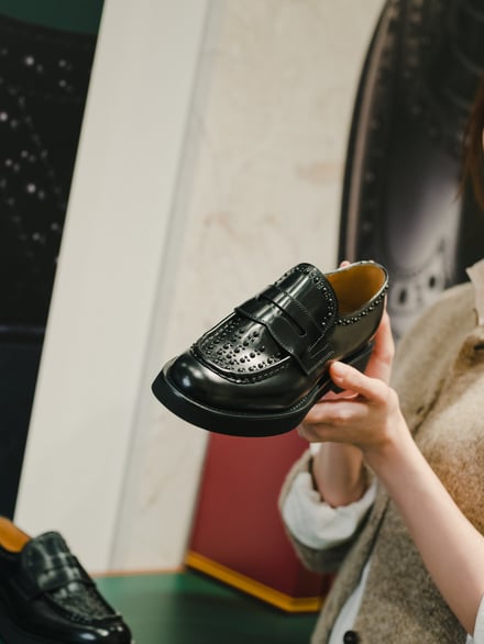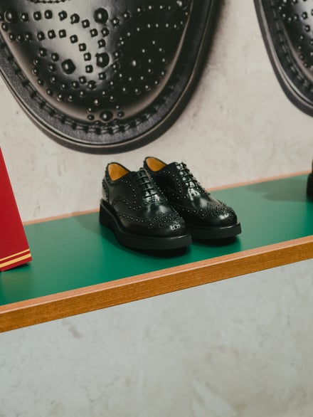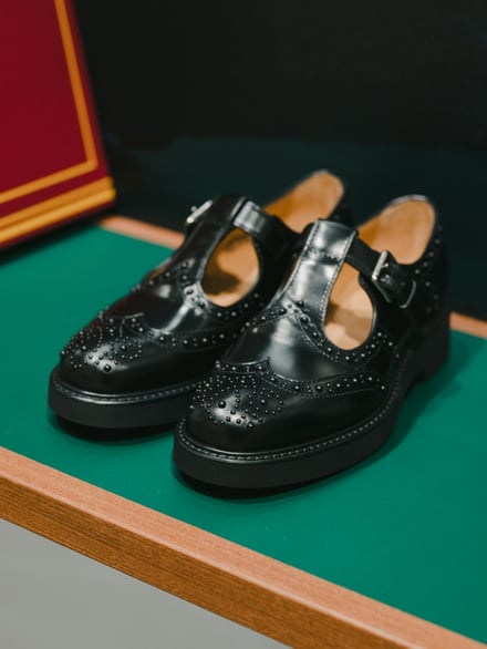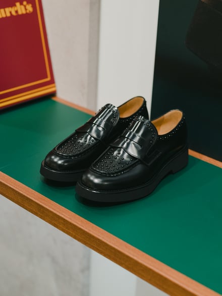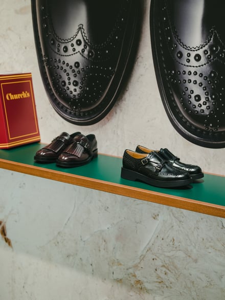 ポップアップストアで先行販売する「City Lights」コレクションは、アイコニックなスタイルをモダンにアレンジ。チャーチ独自のポリッシュドフュメ仕上げを施したレザーに、シャープで遊び心も兼ね備えたブラックスタッズをあしらい、新たな風を吹き込んだ。