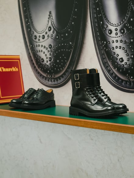 チャーチは1873年にイギリス・ノーサンプトンで創業。伝統的な紳士靴から始まり、150年以上の歴史を持つ正統派の英国靴を展開。独自のグッドイヤー・ウェルト製法によって、1足あたり約250の工程を経て作られるシューズは、履き込むうちに足になじんでいく。熟練のクラフトマンシップと最高級レザーを掛け合わせた上質さは、「007」のジェームズ・ボンドをも魅了。ブリティッシュスタイルを象徴するシューズとして親しまれている。