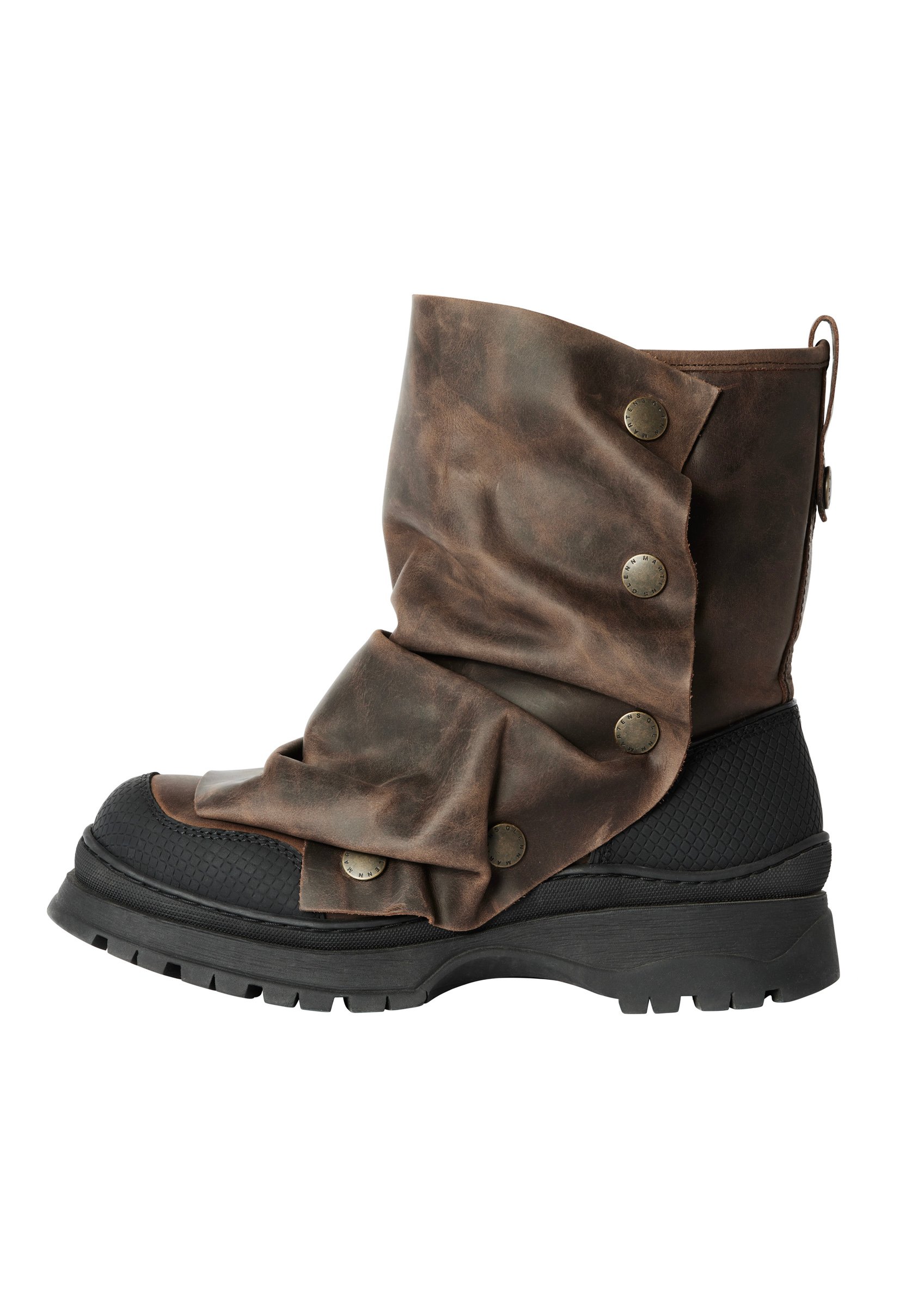 襟元が自由に造形できるワイヤー入りのブレザー(2万4999円)やブルーストライプシャツ(9999円)、トレンチコート(2万4999円)をはじめ、スーパーハイブーツ(4万9999円)やバッグ(9999円)といったアクセサリーも形状記憶する素材を使用。スウェットやジーンズといった定番アイテムはウォッシュ加工などで独特な風合いに仕上げ、ユニークなカッティングで肌見せを楽しむことのできるデザインなどマーティンスらしいツイストの効いたアイテムを展開する。価格帯は税込2999円〜4万9999円。
