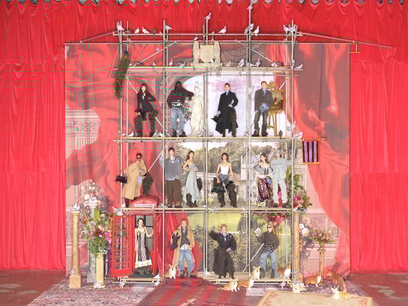 コラボプロジェクトはマーティンスが「メゾン・マルジェラ(Maison Margeila)」のクリエイティブディレクターに就任する前に遡り、約2年前に始動。コレクションは、当時グレンが在籍していた「ワイ・プロジェクト(Y/PROJECT)」 (今年1月にブランド終了)での代表作をオマージュしたフォイルやワイヤーを用いた立体的なシルエットにより着る人が自由に変形できるアイテムが多数。「ディーゼル(DIESEL)」のクリエイションでも見られる退廃的な加工が施されたアイテム、トロンプルイユ(だまし絵)などのプリントアイテムなど、マーティンスのこれまでの歩みを色濃く反映した全57型で構成された。