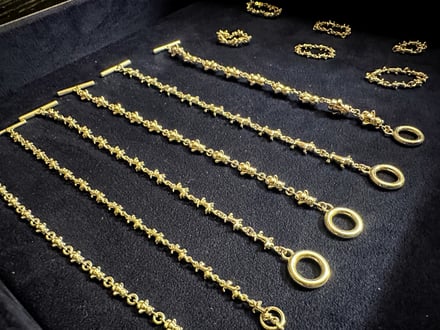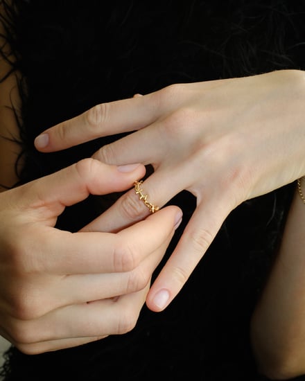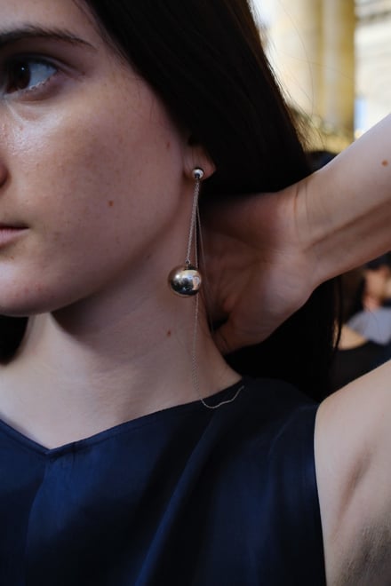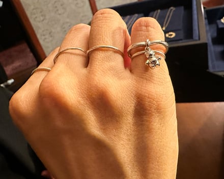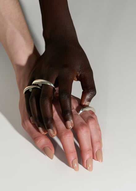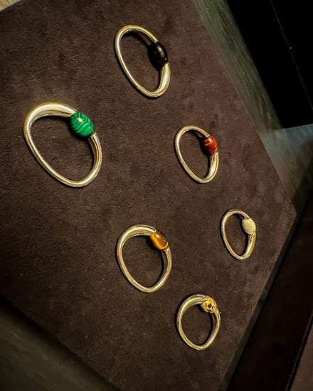 これは、近年インフルエンサーやSNSを起点としたジュエリーブランドが急増する中で、ロロのブランド像を模索した結果だという。「ロロではデザインや素材選びにこだわり、自分が納得するものを作ってきました。誰でもデザイナーやディレクターと言える世の中ですが、“SNSブランド”にはなりたくないですし、そことどう差別化できるか悩みました」(菅原)。彫金学校でマテリアルへの理解を深め、デザインに取り組む菅原だからこそのオリジナリティは、2フィンガーのリングや、数珠からインスピレーションを得たsphere(球体)モチーフのアイテムなどのシグネチャーを生み出し、確かなファンを獲得している。