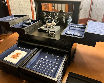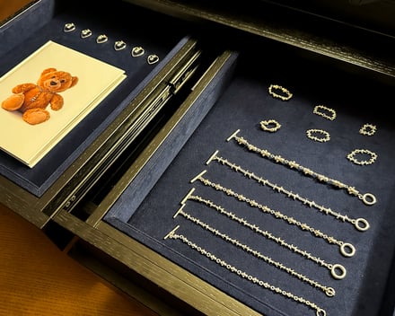 イベントへの参加を踏まえ、子どものおもちゃ箱を想起させるテディベアや犬のモチーフを取り入れた遊び心のある新作コレクション「MY DAUGHTER’S TOY BOX」を制作。シルバー製のリングホルダー(ジュエリーボックス)をスペシャルピースとして展開したほか、目にオニキスを埋め込んだテディベアのキーホルダーなども登場した。