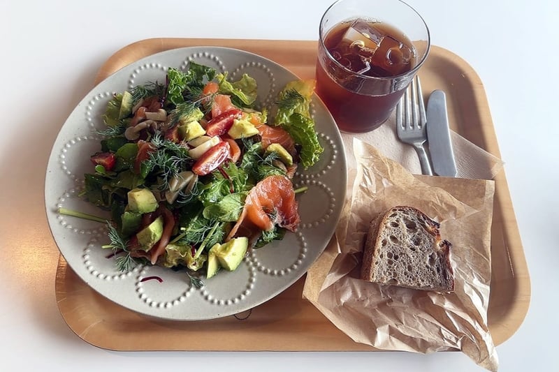 その中にハーブの香りが深みを増してくれる。プレートの主役であるサーモンとゴロッとしたアボカドとの組み合わせは間違いないおいしさだ。ブレッドは素朴な優しい味わいだが、マリネの酸味をやわらかく、さらにおいしくしてくれる。サラダの味つけ、パンとの組み合わせと、すべての要素が完璧に考えられているのを感じた。