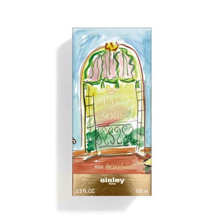 今年のオードゥ ソワール リミテッド エディションの限定ボトルデザインは、イギリス人アーティスト ルーク・エドワード・ホールが描いた。「劇場」をテーマに、夕暮れのエッフェル塔を窓越しに見つめる女性が描かれている。