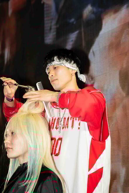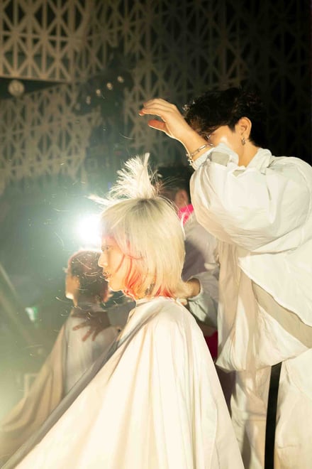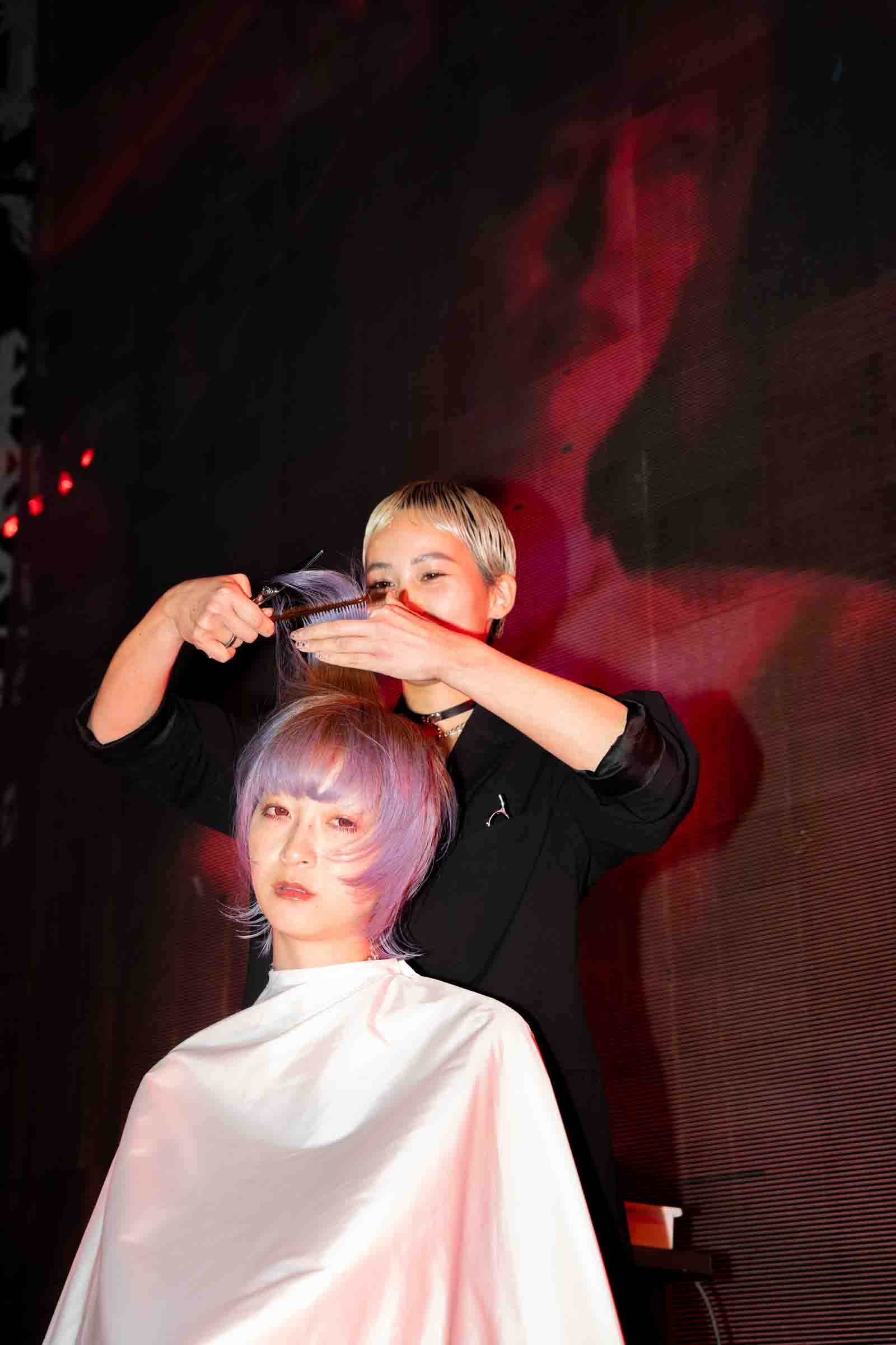 アームズ ナイトは、ヘアデザインに向き合い美容の楽しさを実感する取り組みとして、六本木ヒルズ店カラーリスト小田桐沙樹らの企画のもと昨年からスタート。第2回目となった今年は「夜の映画上映会」をテーマに、7チームに分かれ、映画が始まる前の高揚感や近未来的世界、和の伝統と洋の革新の融合などを表現した、カット・スタイリング・アレンジを披露した。