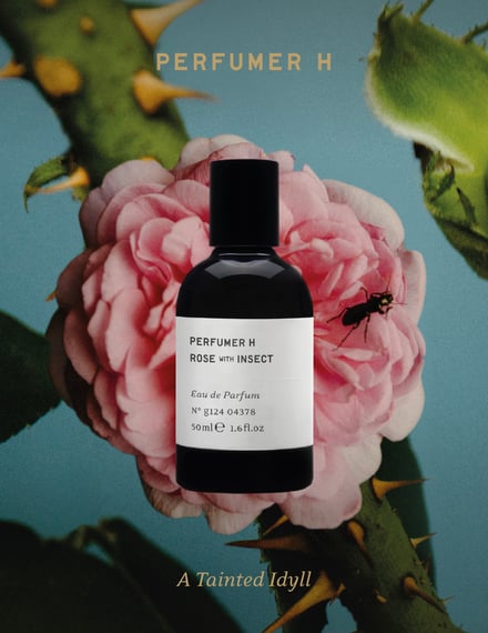 ロンドン発のフレグランスブランド「パフューマー エイチ(Perfumer H)」が、新作の香り「ローズ ウィズ インセクト」を発売した。「オードパルファン」(50mL 2万9700円、100mL 4万370円)と「オードパルファン&ハンド ブロウボトルセット」(100ml 10万9670円)をラインナップする。