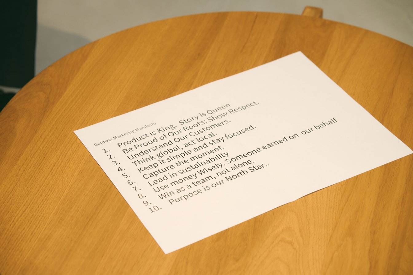 チームが発足した時、10箇条の指針「マーケティングマニフェスト」を作りました。20年以上もマーケティングの仕事をして見聞きしたことや、心に残った言葉を、シンプルにチームに伝えることを心掛けました。