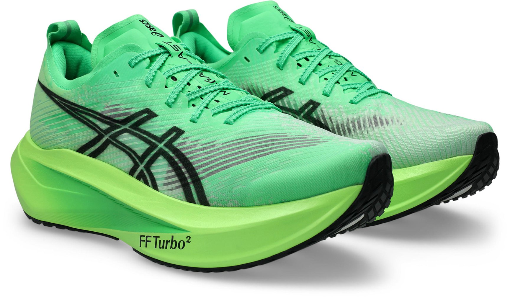 メタスピードシリーズは、今年の世界陸上に合わせて発表された3モデルを限定カラーのグリーンゲッコー×ブラックで展開。軽量性を追求した最新モデル「メタスピードレイ(METASPEED RAY)」をはじめ、ストライド型のランナーに向けた「メタスピードスカイトウキョウ(METASPEED SKY TOKYO)」、ピッチ型のランナーをターゲットにした「メタスピードエッジトウキョウ(METASPEED EDGE TOKYO)」を揃える。価格は2万9700〜3万3000円。