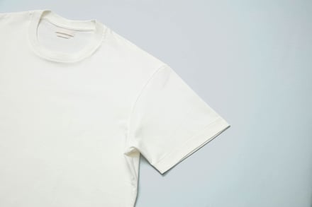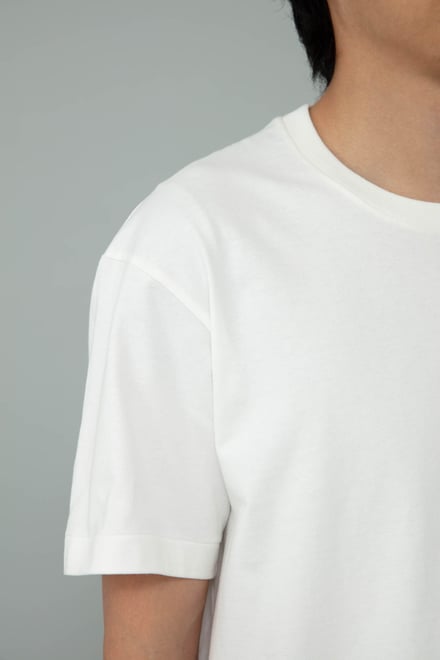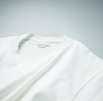 ブリュード・プロテインは、カシミヤよりも細い直径14ミクロングレードを採用。7%の混率ながらその機能性や肌なじみの良さを維持しているという。ベースとなるコットンは、厳選された単一農場由来の高品質なオーストラリア産アンディ綿「HASE-1」を使用。原綿の仕入れから紡績・製織・縫製まで一貫したトレーサビリティを確保しており、素材の生産過程を遡ることができる。長谷虎紡績の技術によりブレンド・紡績された40番の極細糸を撚り合わせた双糸を使用し、24ゲージの編み機で高密度に編立てた。1度、1ミリ単位で追求したパターンや、高度な職人技術を要する綿糸での縫製、手間のかかる天地引き縫いなど、肌あたりと美しさを実現するためのさまざまな工夫が加えられているという。また、汗のニオイの原因となるアンモニアや酢酸に働きかけ、ニオイの元からケアする消臭機能を備えており、洗濯を繰り返しても効果が持続する。