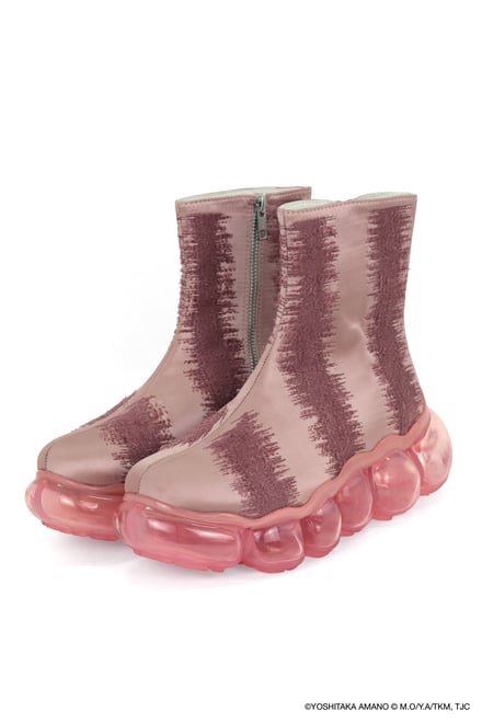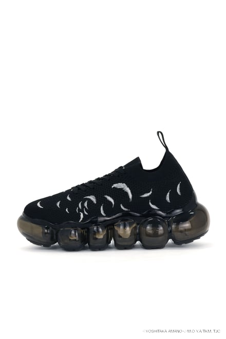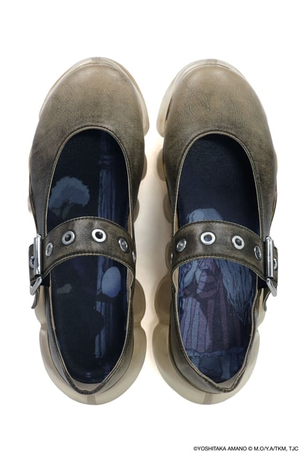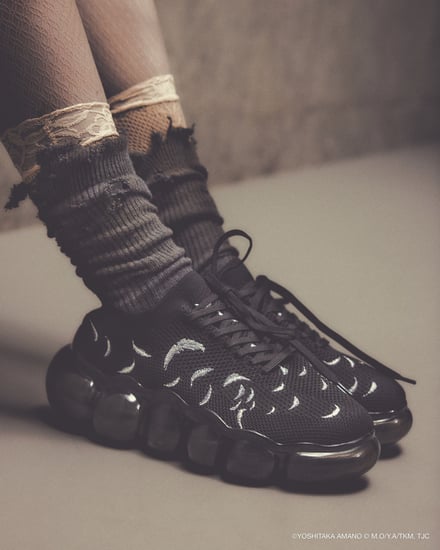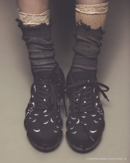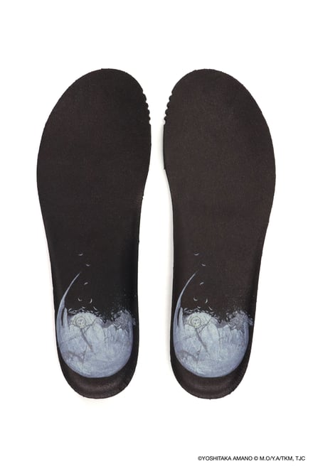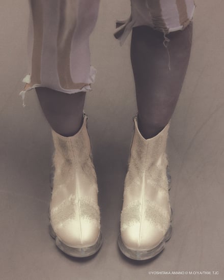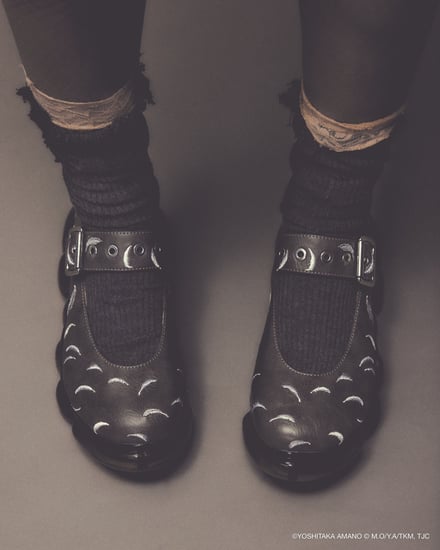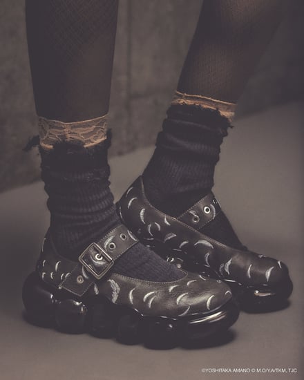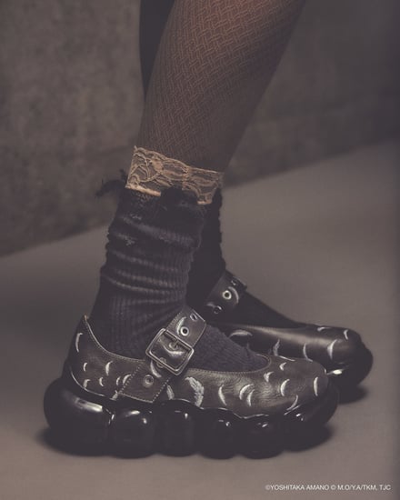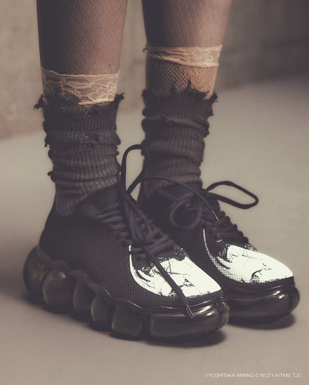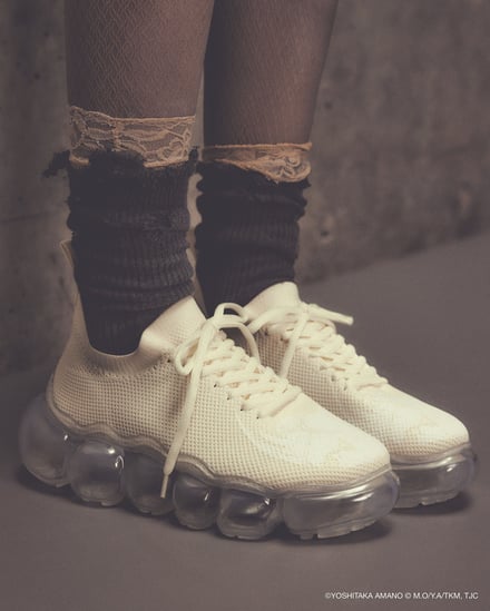 シューズでは、雲のようなもこもことしたフォルムを特徴とする「ミキオサカベ」のスニーカー「New “Jewelry”」をベースに採用。少女の原画やアニメ作中のシーンをモチーフにしたオリジナルインソールが付属し、アッパーデザインには繊細な刺繍やプリントが施されている。価格帯は4万1800〜5万700円。ウェアでは、原画の紙の風合いや質感を表現。少女が纏うドレスをイメージしたデザインが展開され、原画に残されたカラーチャートを残すことで、創作の痕跡をそのまま作品に落とし込んでいる。価格帯は2万5500〜6万4900円。