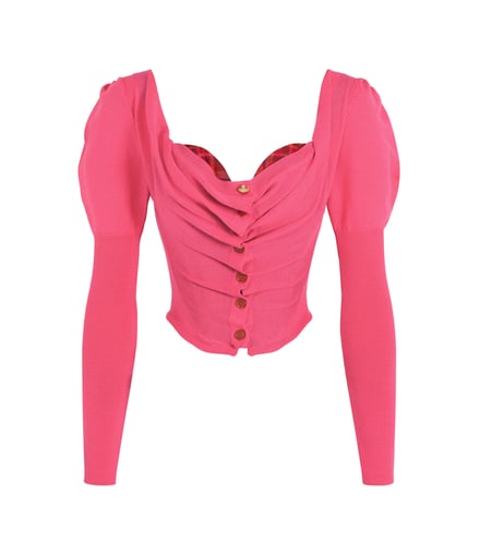 小松奈々のスタイルは「ウルトラ・フェミニニティ」とし、ヴィヴィアン・ウエストウッドのシグネチャータータンを重ね刷りしたパステルピンクの「ミニサンデードレス(Mini Sunday Dress)」をはじめ、パールジュエリーやフローラルプリントのアクセサリーなどをラインナップ。大崎ナナの「パンク・エッジ」なスタイルからは、同ブランドの1996-97年秋冬コレクション「Storm In A Teacup」に登場したストーム・ジャケットにオマージュを捧げたストーミージャケットや、同じくレッドのロキャロンタータンをあしらったコルセットとスカートのツインセットなどを展開する。