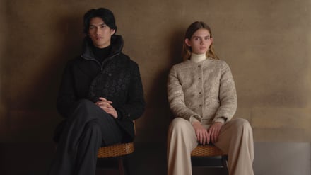 同コレクションは、銀座店のオープン1周年を記念して製作。西陣織の老舗テキスタイルブランド「HOSOO」のオリジナル生地を用いたダウンジャケットをメンズ2型、ウィメンズ2型の計4型をラインナップしている。