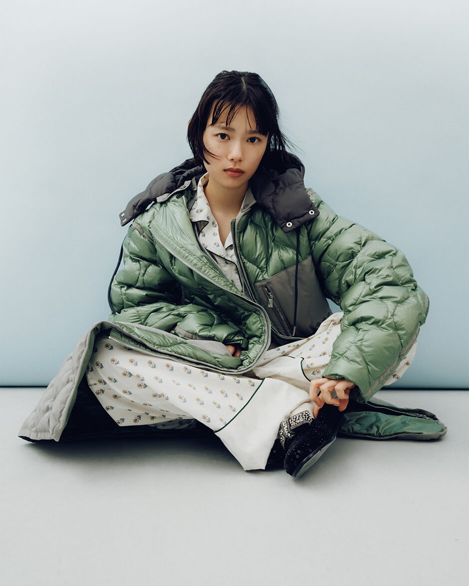 メンズアイテムが描く新しい輪郭に包まれて。杉咲花が魅せるダウンコートの今。