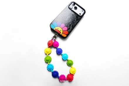 「FLOWERS BLOOM」では、村上隆の代表的モチーフである「フラワー」を用いたテックアクセサリーを12型を展開する。ブラインドボックス形式で販売される「フラワー ウェーブシリコンケース」(1万1330円)と「お花ちゃん スマホフィギュア」(7370円)のほか、「フラワリアン(FLOWERIAN)」のモチーフを採用した「お花ちゃん コレクティブル イヤホンケース」(4万5320円)、マグネット式ワイヤレス充電器(1万2100円)、シリコンビーズを組み合わせた「限定 フラワー スマホストラップ」(1万4960円)などをラインナップする。
