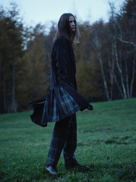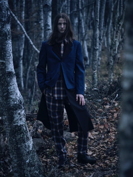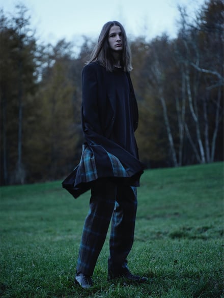 今回のコラボコレクションは、アメリカを代表する3つのブランドとの特別企画。ペンドルトンとのコラボでは、2008-2009秋冬ランウェイで登場したチェック柄アイテムを再構築。チェック生地を用いたブランケットのようなフォルムが特徴ストールジャケット(89万1000円)など、9型を展開する。
