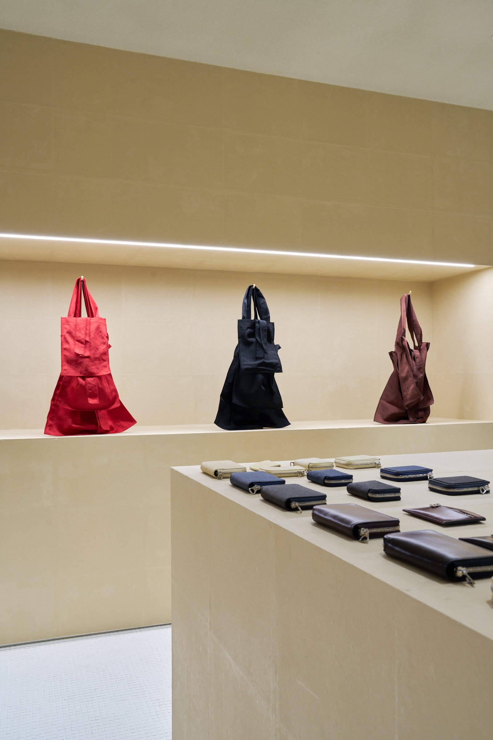 ITTIOSAKAのコンセプトは「Of land and hand.(土地と手の仕事)」。関西を拠点とするさまざまなクリエイターと共に、日本の文化に宿る静けさや温もりを感じる空間を作り上げた。空間デザインを担当したninkipen!は、大阪を拠点に南船場の「PORT」やブルーボトルコーヒー梅田茶屋町カフェなど、関西のカルチャーを象徴する空間を数多く手掛けた今津康夫と中村健太郎による建築家ユニット。奈良に古くから伝わる技法で一本ずつ手で磨き上げた「森庄」の磨き丸太と、自然の繊維や土の含量を使用した和紙を制作している和紙作家 ハタノワタルの和紙などを用いた穏やかな空間を表現した。施工を担当した「アンドエス(&S)」は、関西を拠点に素材の表情を活かした空間づくりを行う施工チームが担当。ninkipen!の今津は、「イッチの素材にこだわったシンプルで削ぎ落としたデザインは、私たちの建築に対する姿勢と共通しています。引き算の美学が活きるように、丸太や和紙といった素材そのものの魅力を空間でも表現しました」と説明。素材選びから什器、香りに至るまで、イッチのものづくりを構成する要素を見つめ直し、土地と職人の感性を掛け合わせて表現したという。