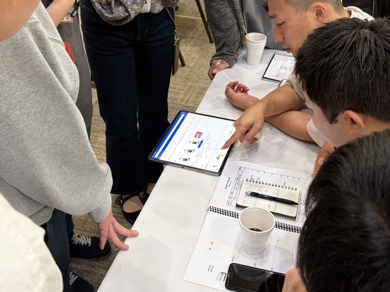 ホームデポの売場でアプリ機能を検証する参加者。棚番号検索・在庫確認・商品レビューを、その場で照合しながら“デジタルが前提のDIY購買体験”を学ぶ。