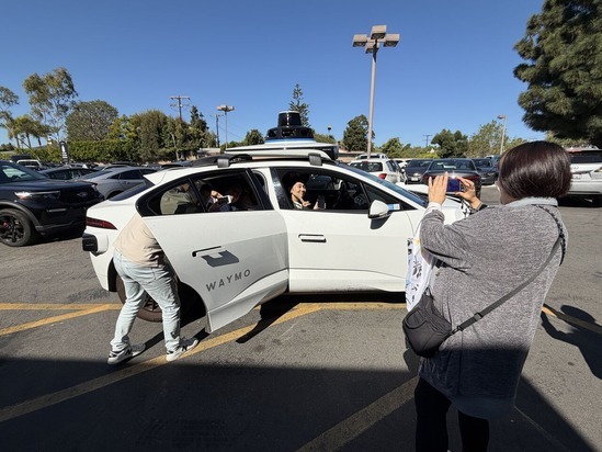 二日目のハイライト、ロボタクシー乗車体験。ドライバー不在の車両に乗り込みながら、“未来の移動がすでに日常化している”ロサンゼルスの現実を肌で感じる。